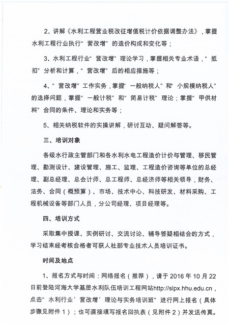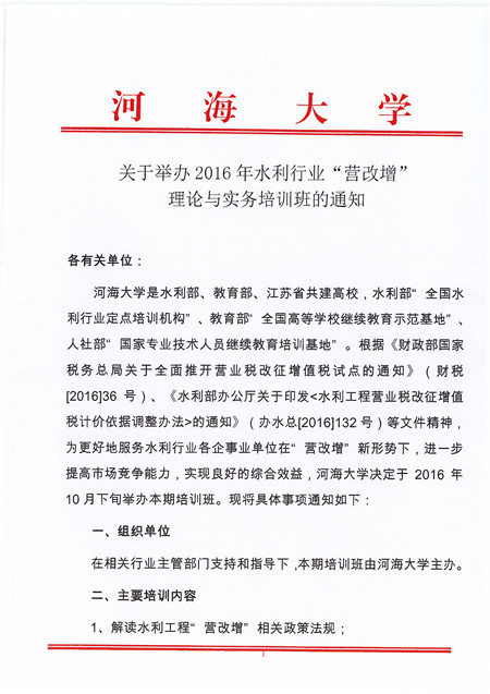 2016-10-08 关于举办2016年水利行业“营改增”理论与实务培训班的通知
