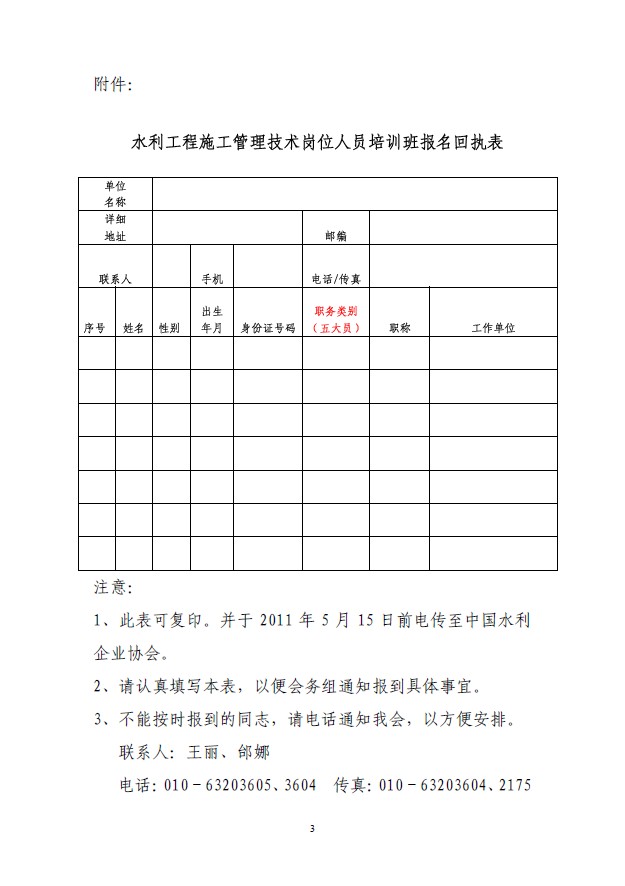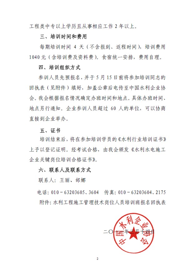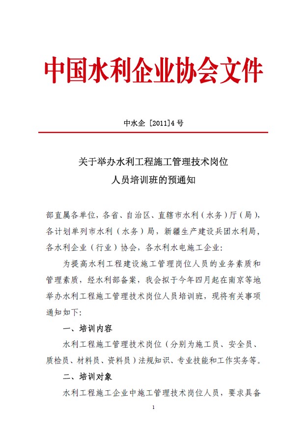 关于举办水利工程施工管理技术岗位人员培训班的预通知