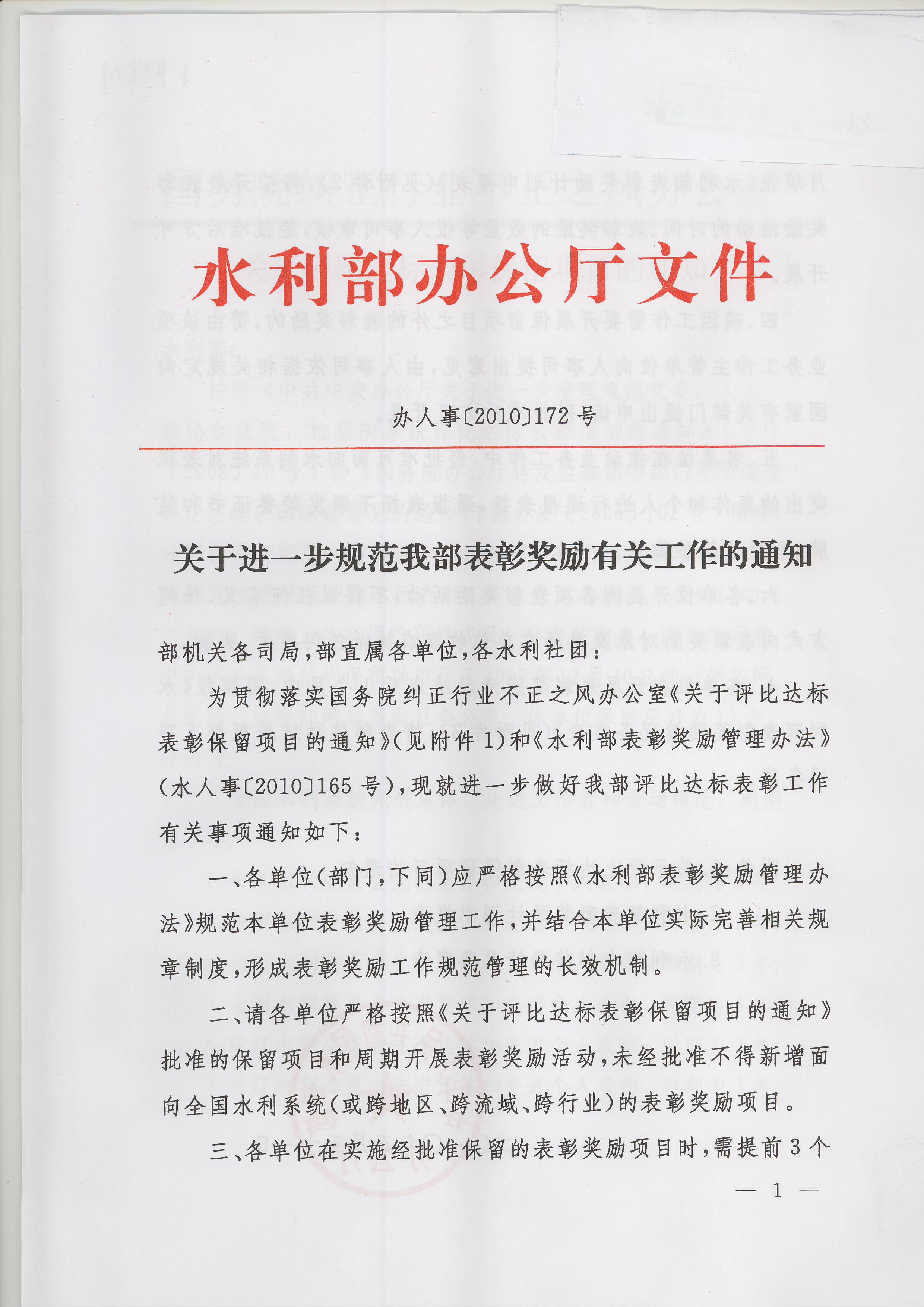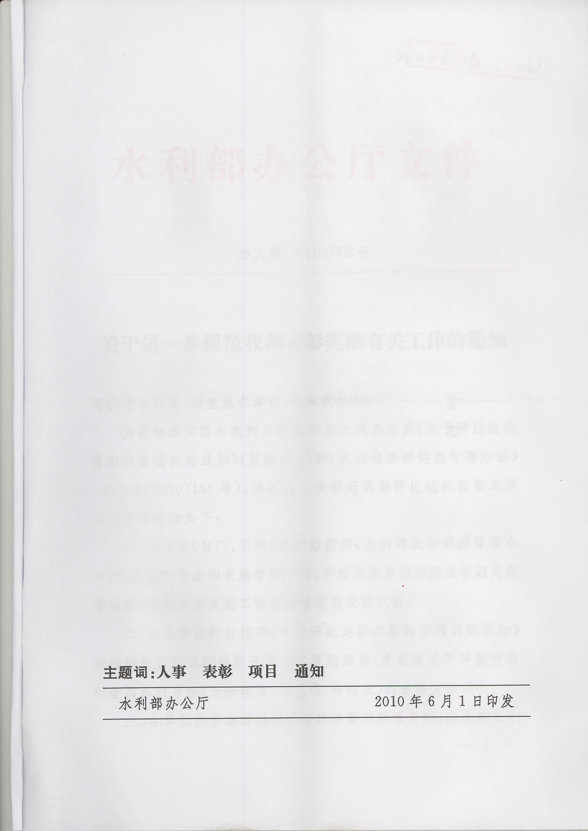 水利部《关于进一步规范我部表彰奖励有关工作的通知》