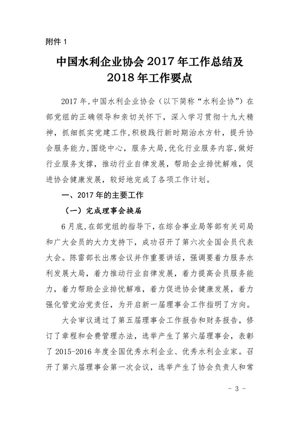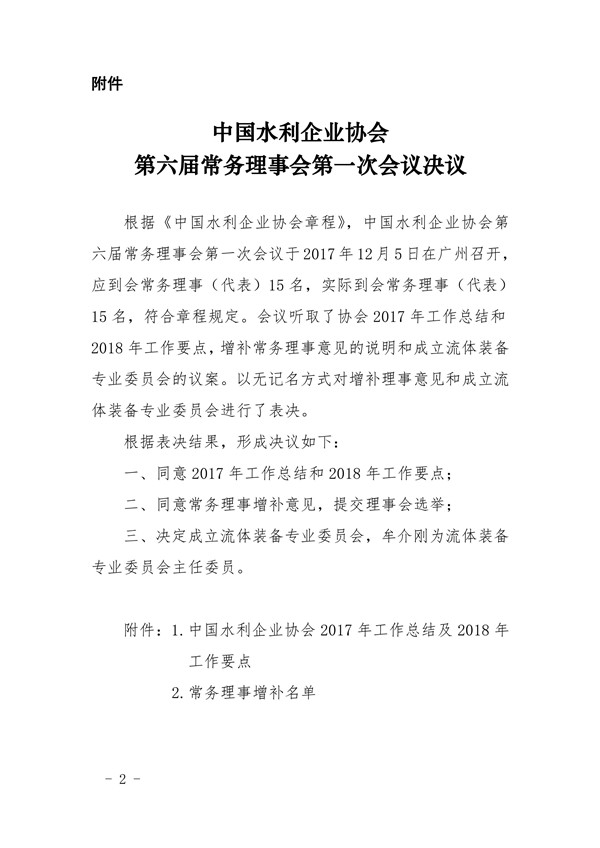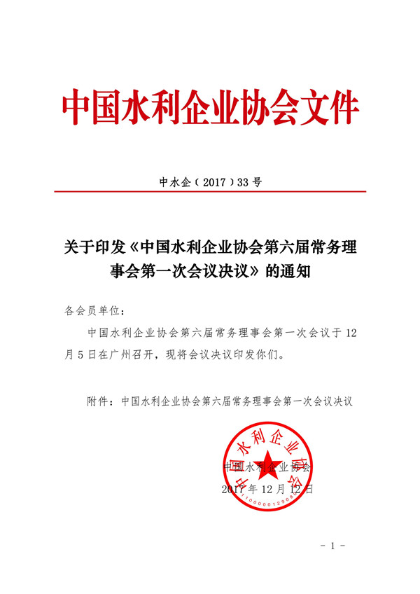 关于印发《中国水利企业协会第六届常务理事会第一次会议决议》的通知