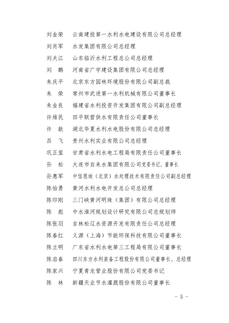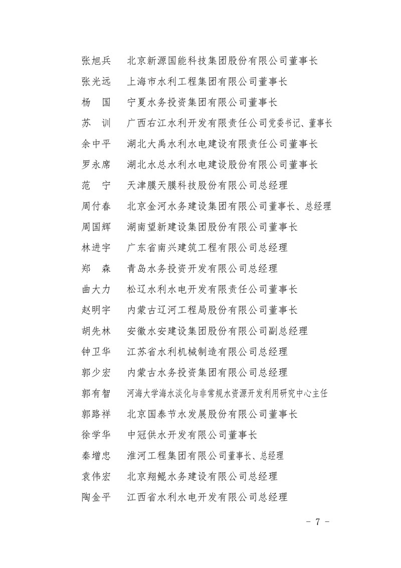 关于印发中国水利企业协会第六届理事会组成人员名单的通知