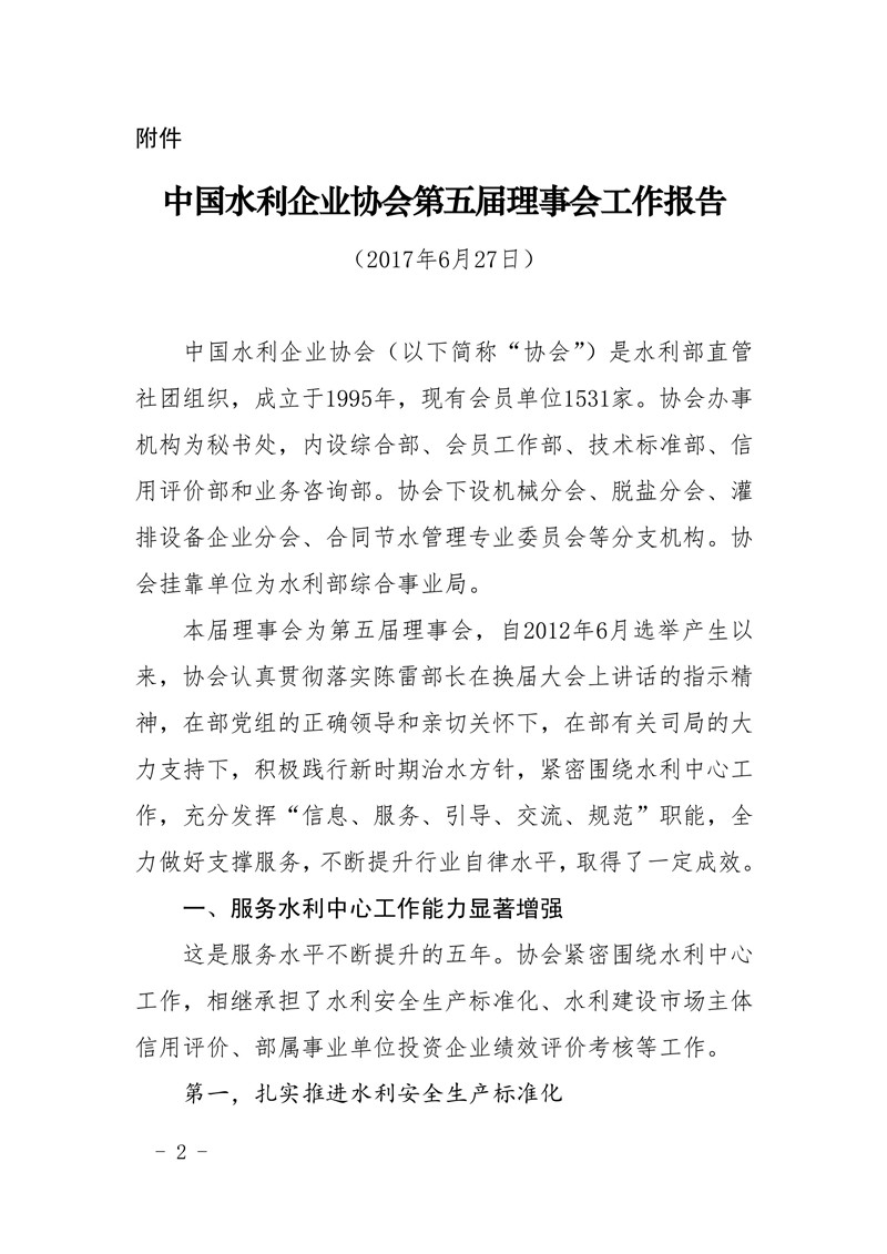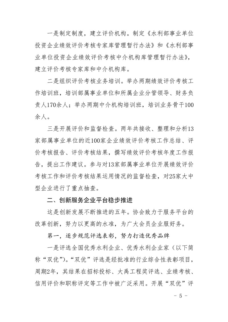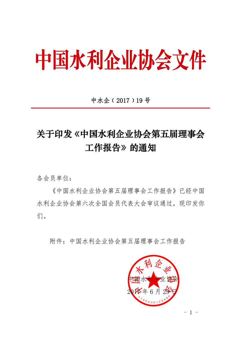 关于印发《中国水利企业协会第五届理事会工作报告》的通知