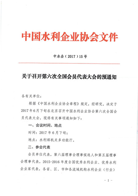 关于召开第六次全国会员代表大会的预通知