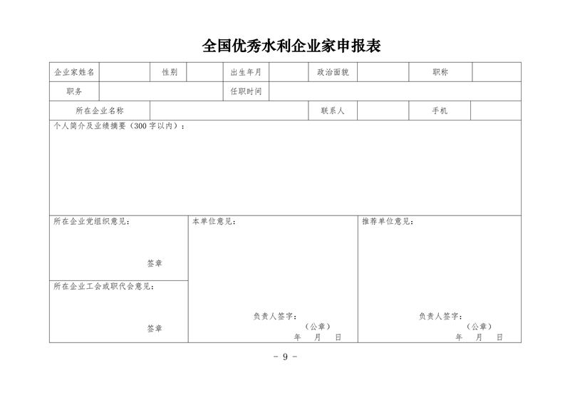 关于印发《全国优秀水利企业、企业家评选办法》的通知