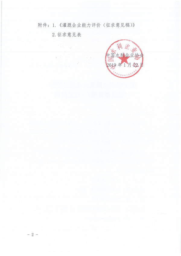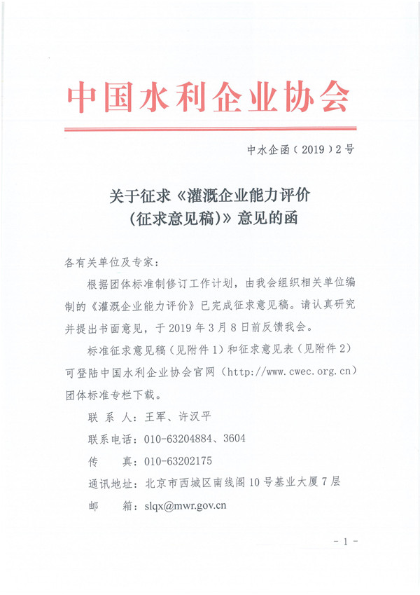 关于征求《灌溉企业能力评价(征求意见稿)》意见的函