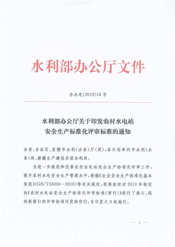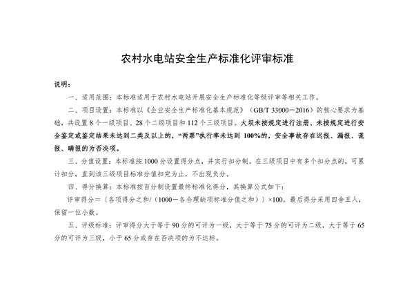 水利部办公厅关于印发农村水电站安全生产标准化评审标准的通知