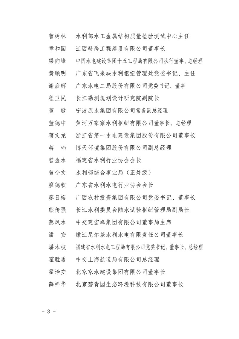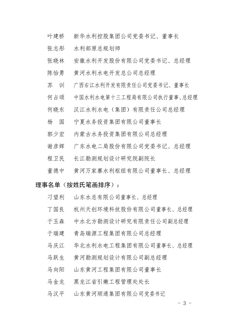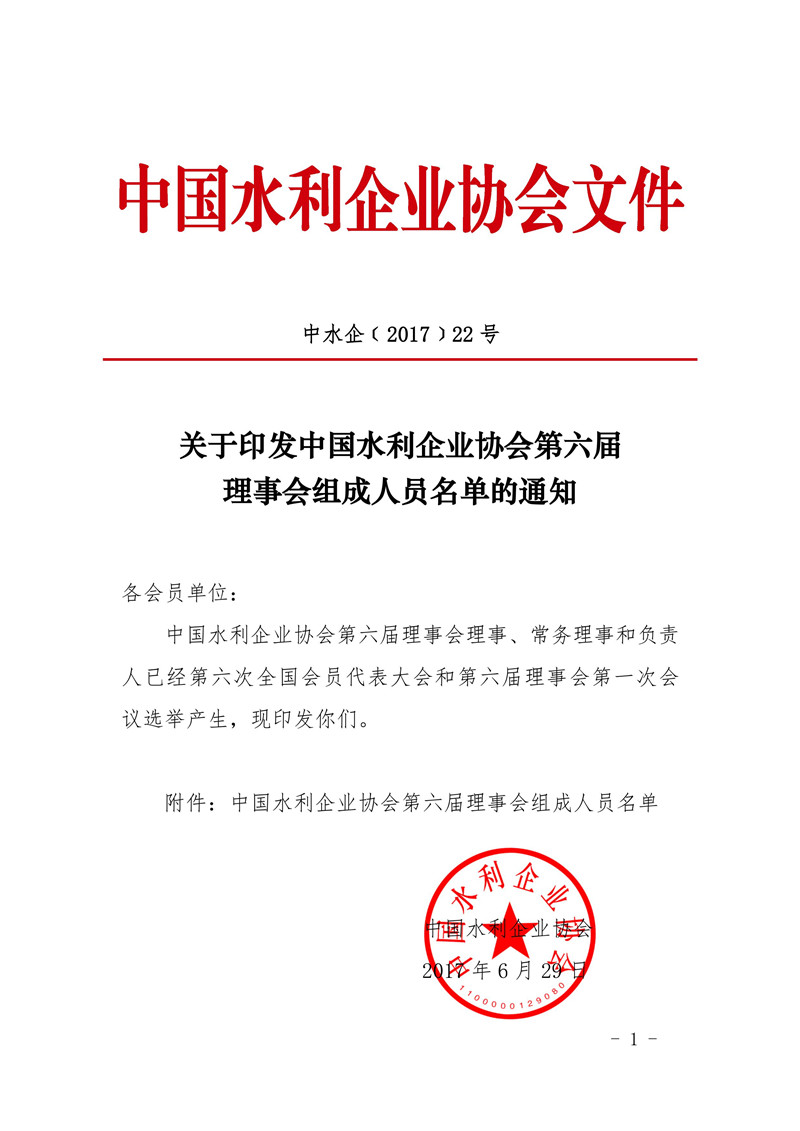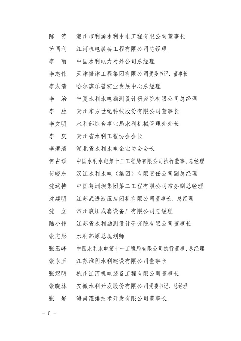 关于印发中国水利企业协会第六届理事会组成人员名单的通知