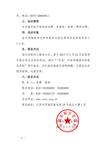 关于举办2015-2016年度全国优秀水利企业、企业家评选申报培训班的通知