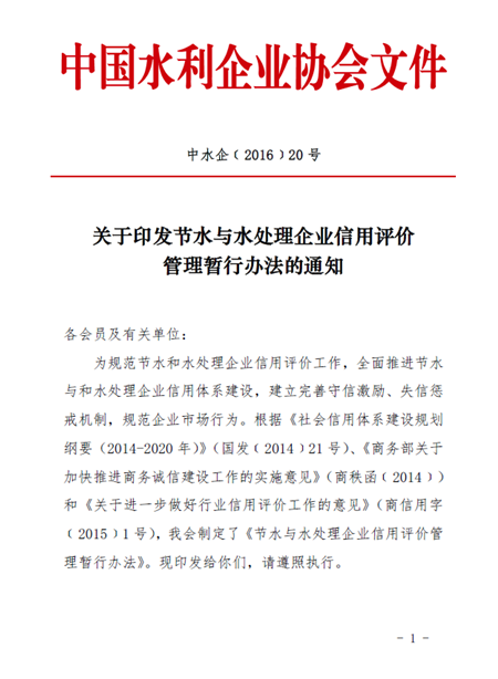 第四条 中国水利企业协会统一组织节水与水处理企业信用评价。