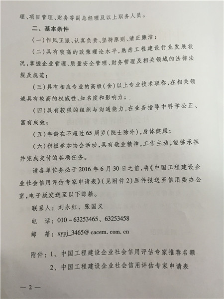 关于推荐中国工程建设企业社会信用评估专家的函