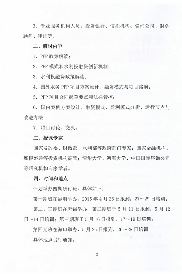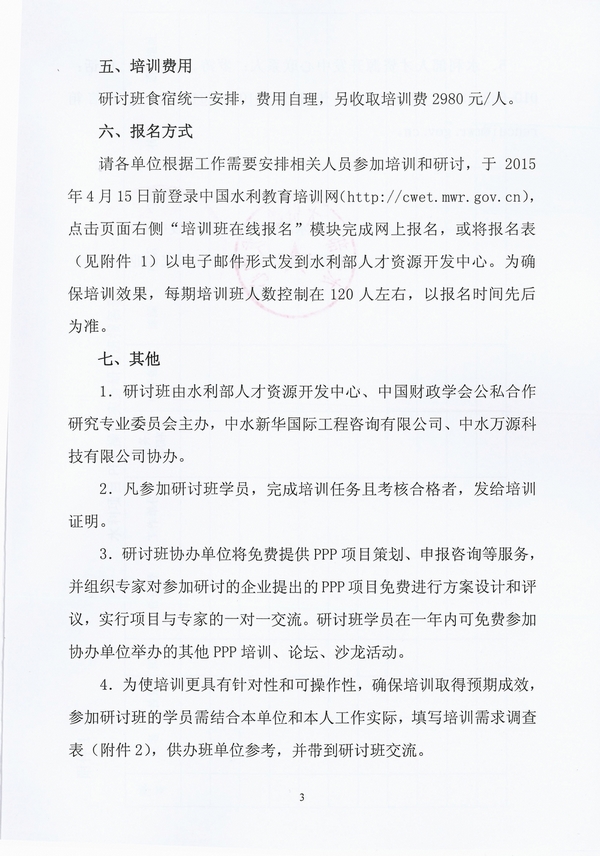 关于面向社会举办水利项目PPP操作实务培训班的函