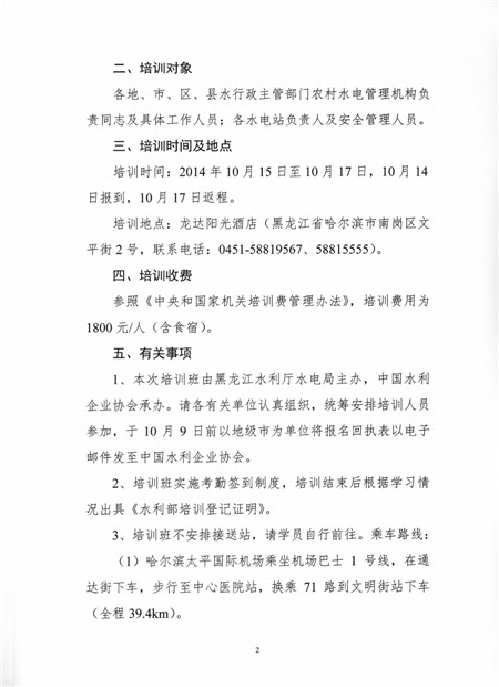 关于举办黑龙江省第一期农村水电安全生产标准化建设宣贯培训班的通知