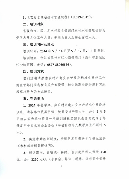 关于举办2014年第一期农村水电安全生产标准化建设培训班的通知