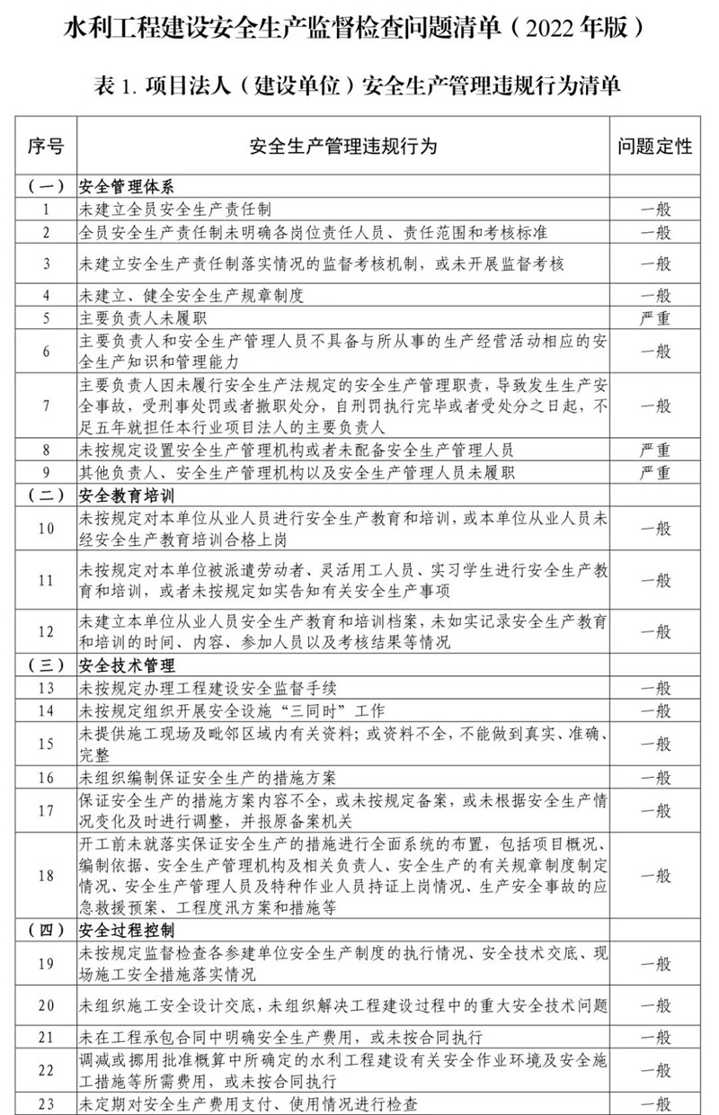 为进一步强化水利工程建设领域安全生产监督检查,增强检查的针对性、有效性和规范性,水利部监督司组织对《水利工程建设安全生产监督检查问题清单(2021年版)》(办监督〔2021〕207号)进行修订,形成了《水利工程建设安全生产监督检查问题清单(2022年版)》。现印发给你单位,请遵照执行。