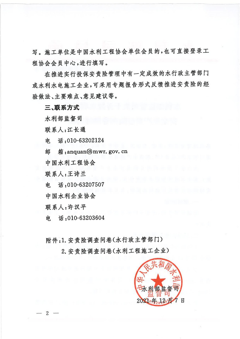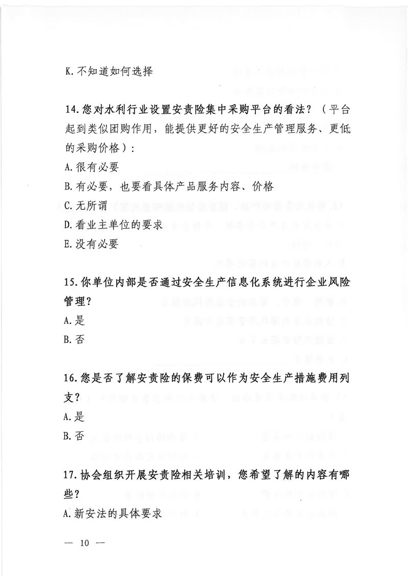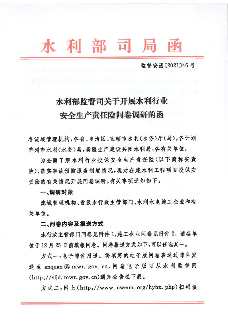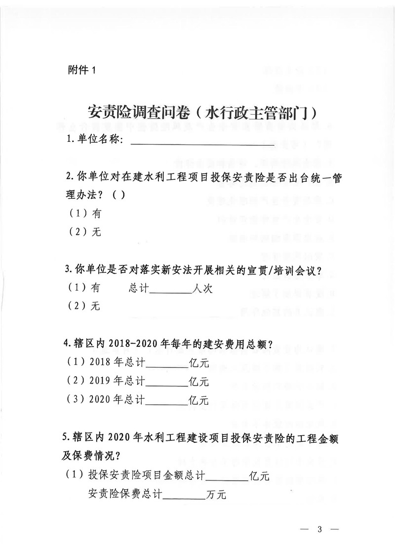 水利部监督司关于开展水利行业安全生产责任险问卷调研的函