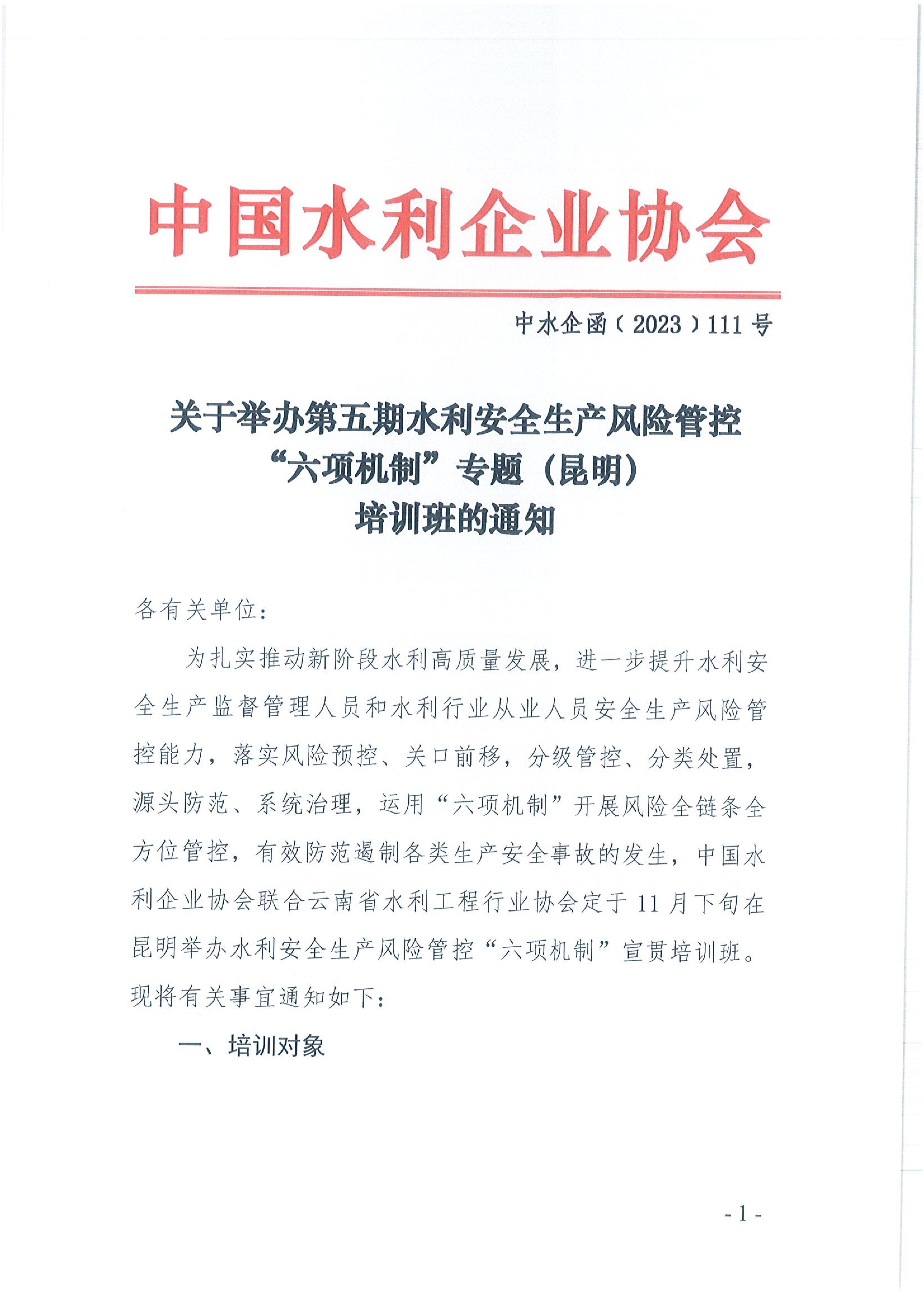 关于举办第五期水利安全生产风险管控“六项机制”专题(昆明)培训班的通知