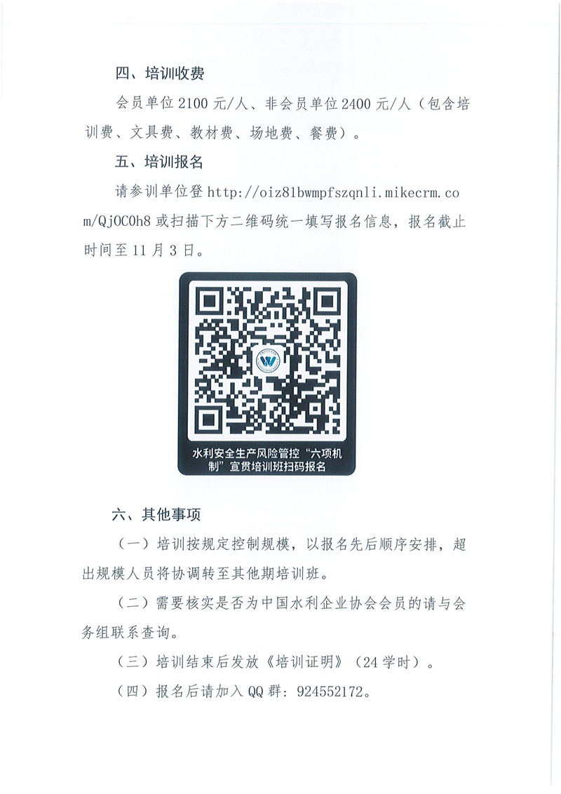 关于举办水利安全生产风险管控“六项机制”宣贯培训班的预通知