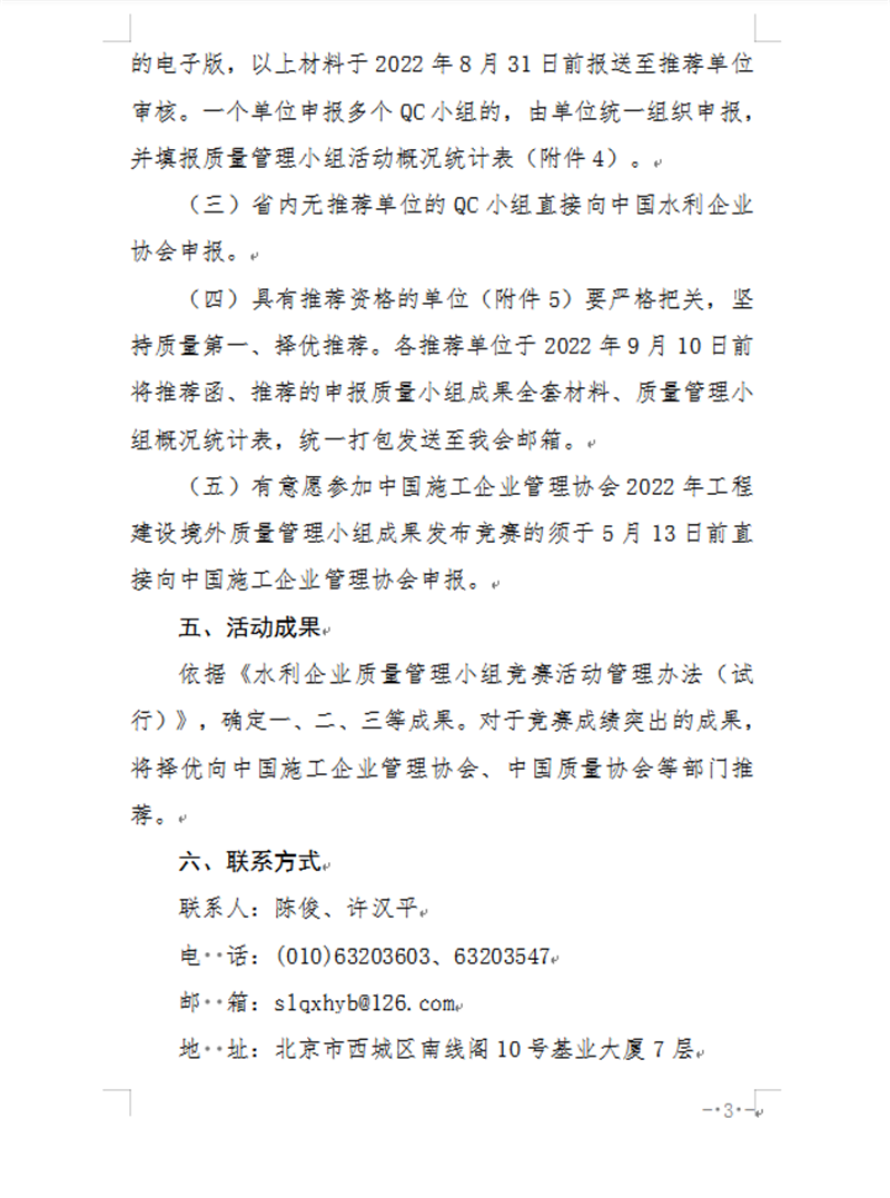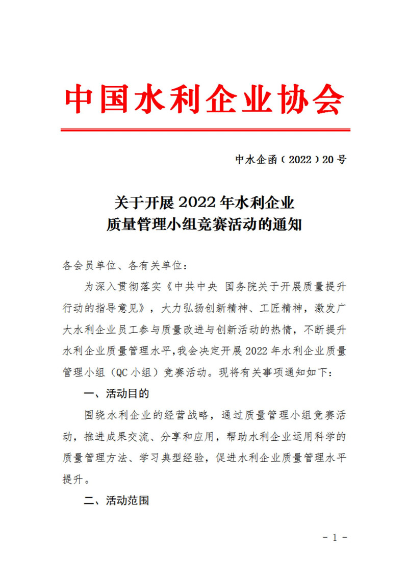 关于开展2022年水利企业质量管理小组竞赛活动的通知