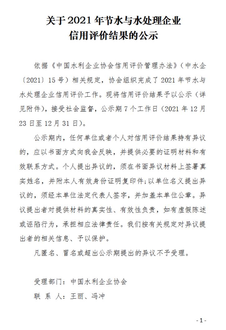 关于2021年节水与水处理企业信用评价结果的公示.pdf