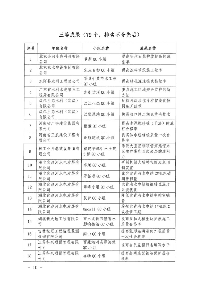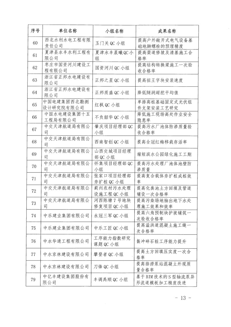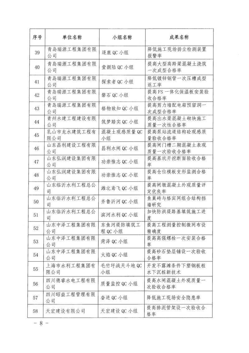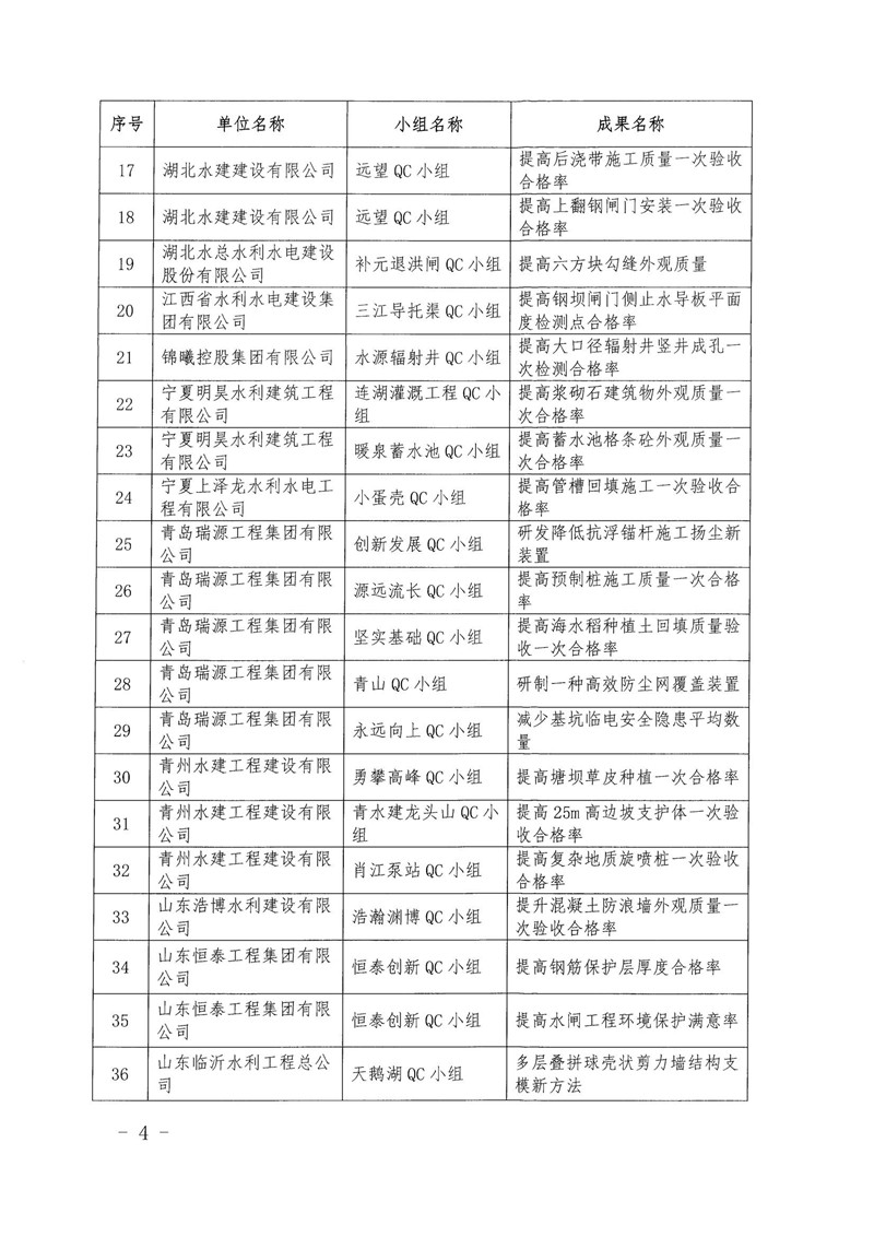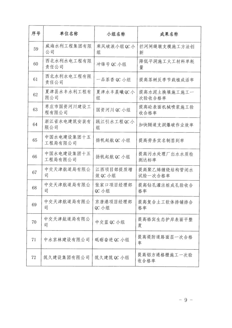 关于公布2021年度水利企业优秀质量管理小组的通知