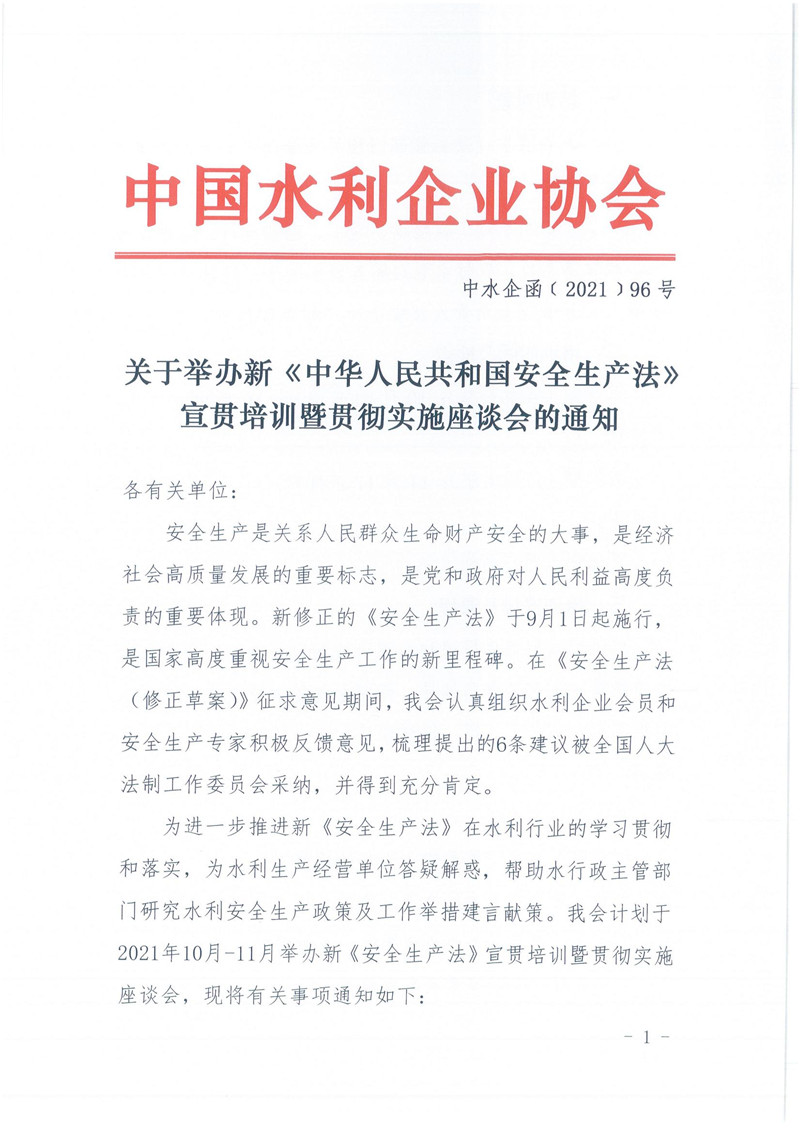 关于举办新《中华人民共和国安全生产法》宣贯培训暨贯彻实施座谈会的通知