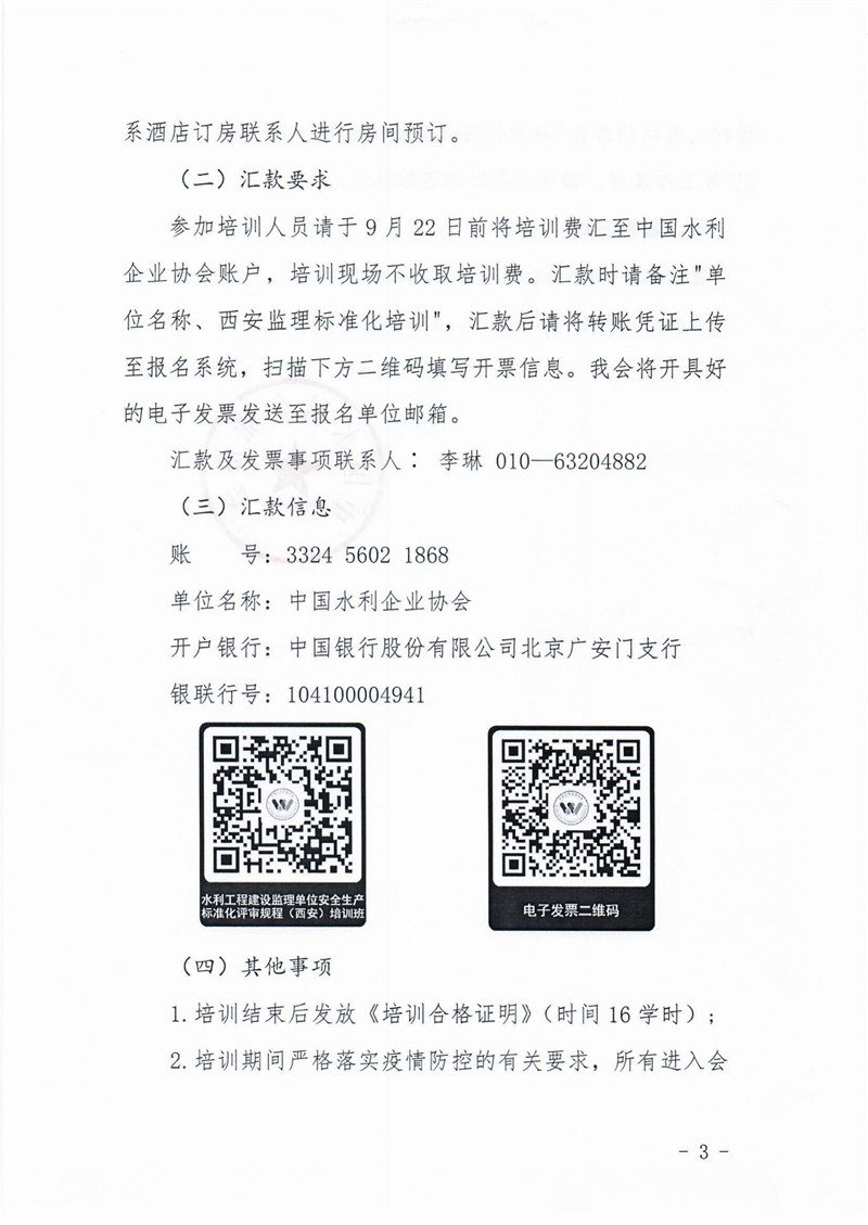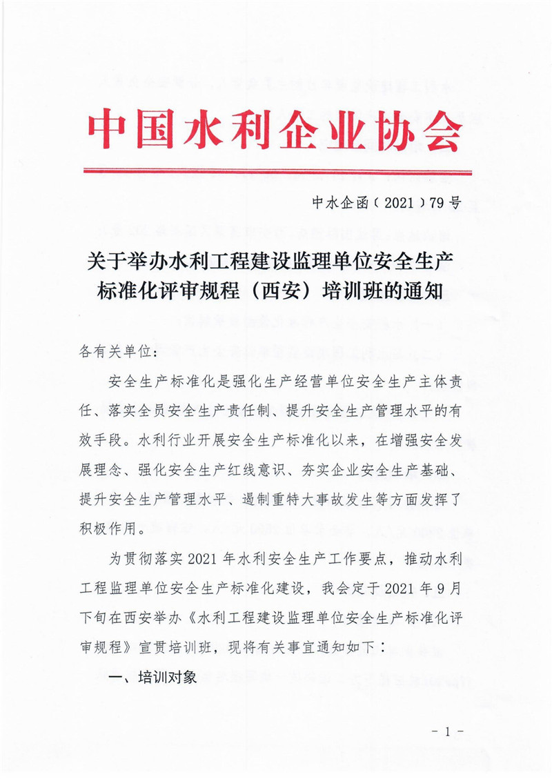 关于举办水利工程建设监理单位安全生产标准化评审规程(西安)培训班的通知