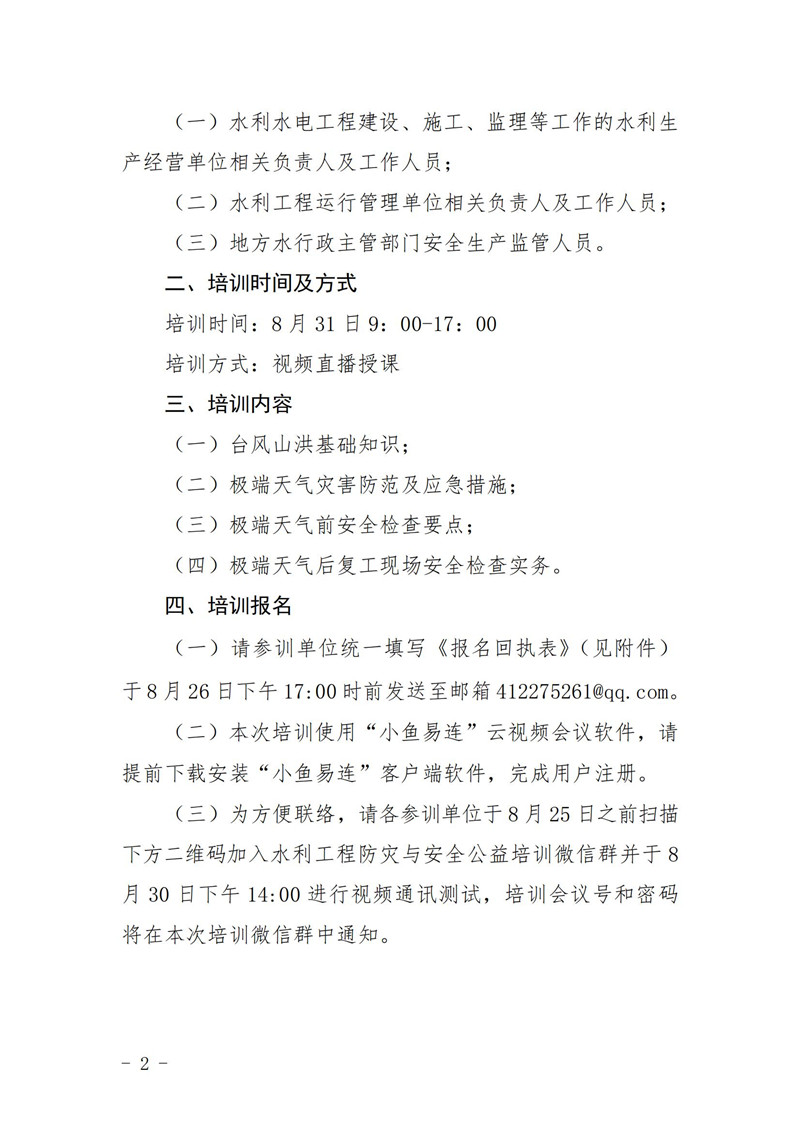 关于举办水利建设工程极端天气灾害防范与复工现场安全检查专题公益培训的通知