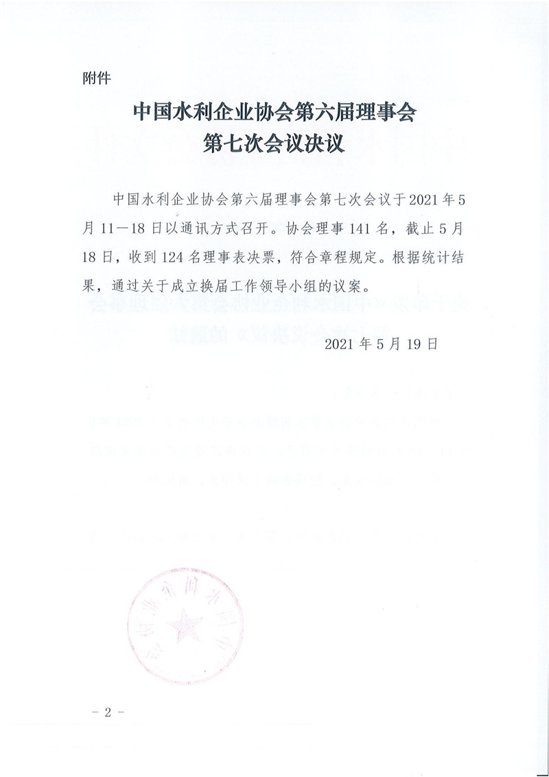 关于印发《中国水利企业协会第六届理事会第七次会议决议》的通知