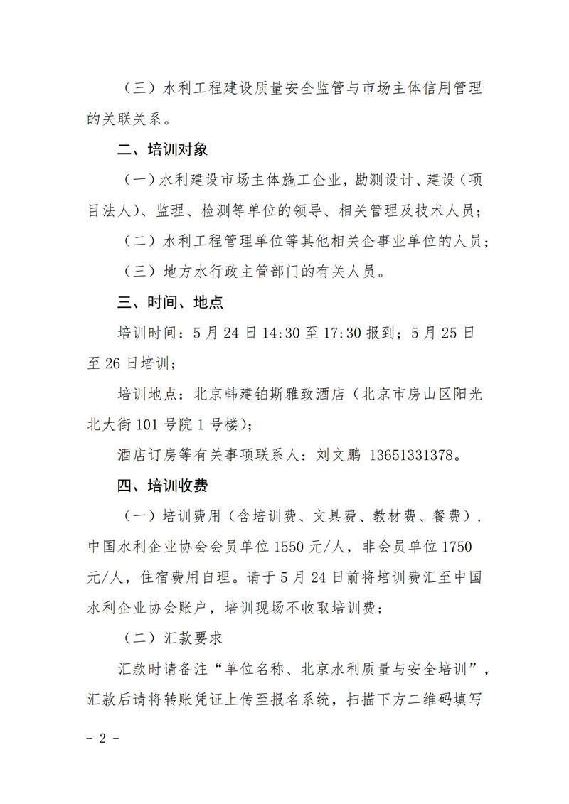 关于举办水利工程建设质量与安全监管提升专题(北京)培训班的通知
