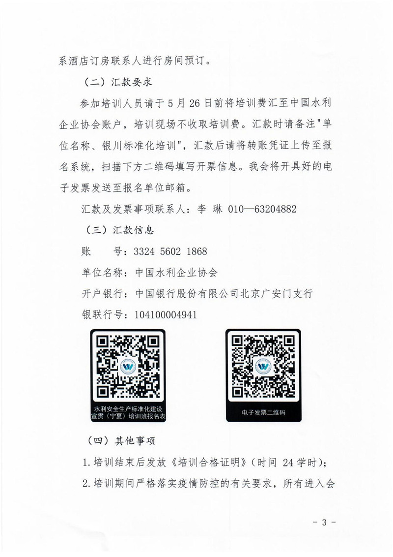 关于举办水利安全生产标准化建设宣贯(银川)培训班的通知