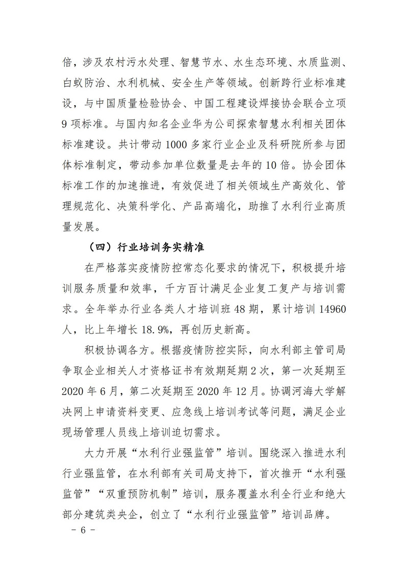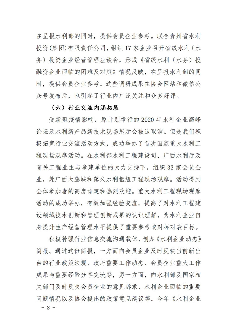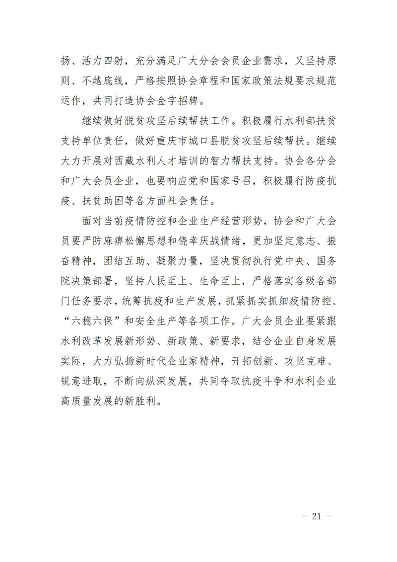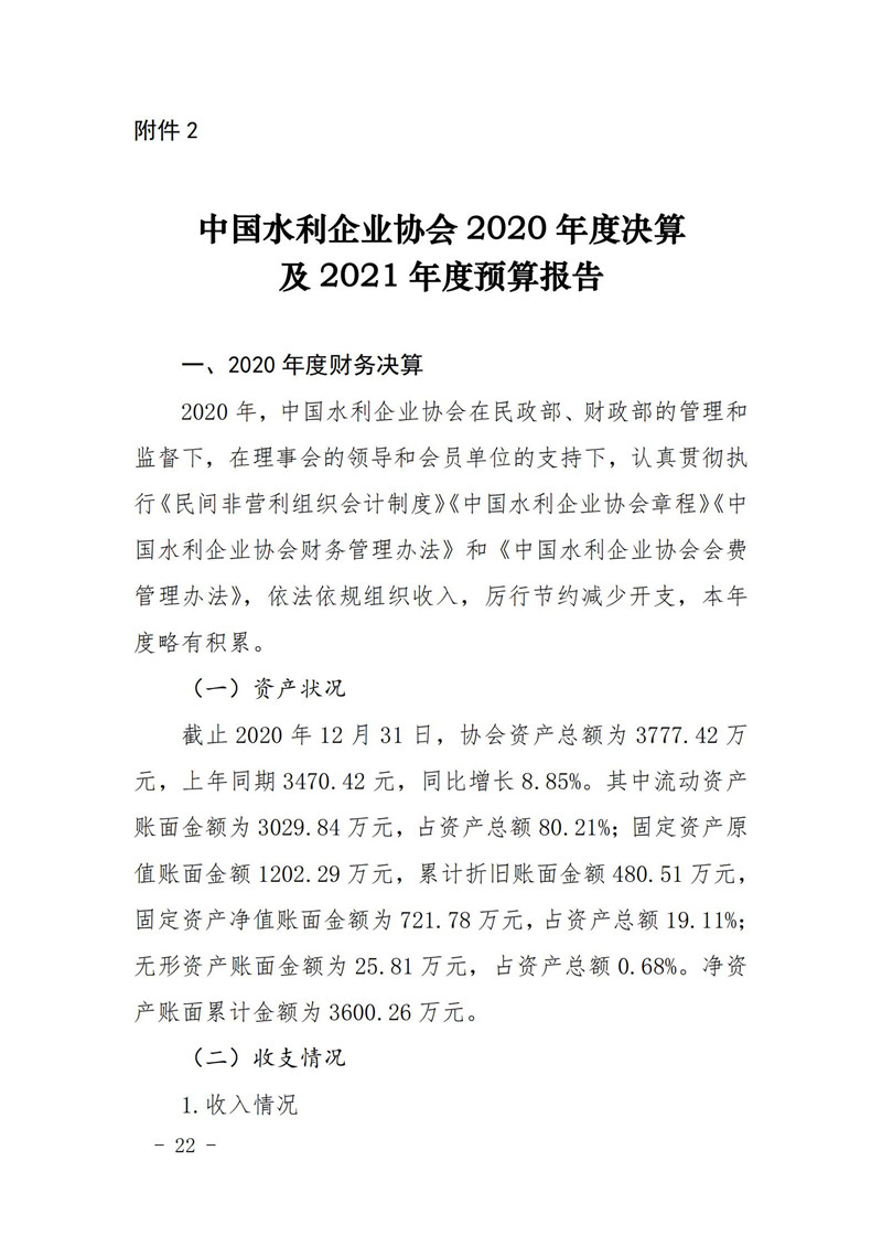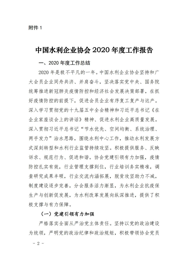 关于印发中国水利企业协会《2020年度工作报告》《2020年财务决算和2021年预算》的通知