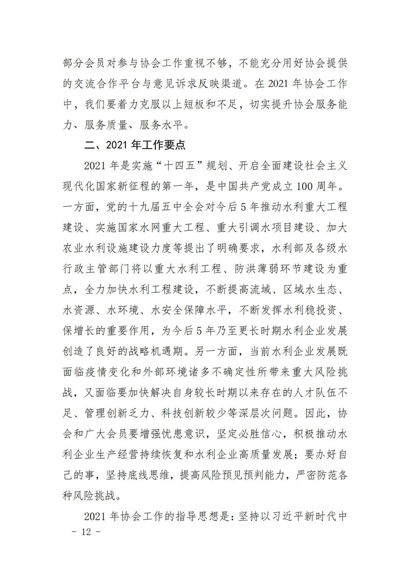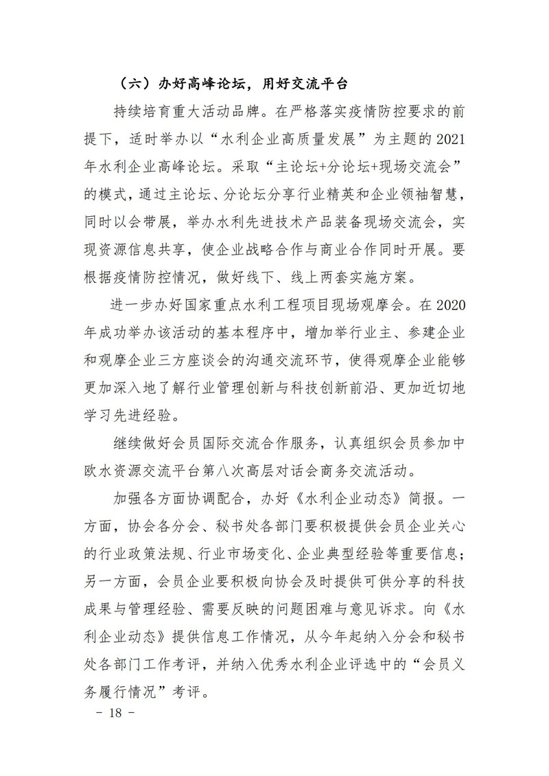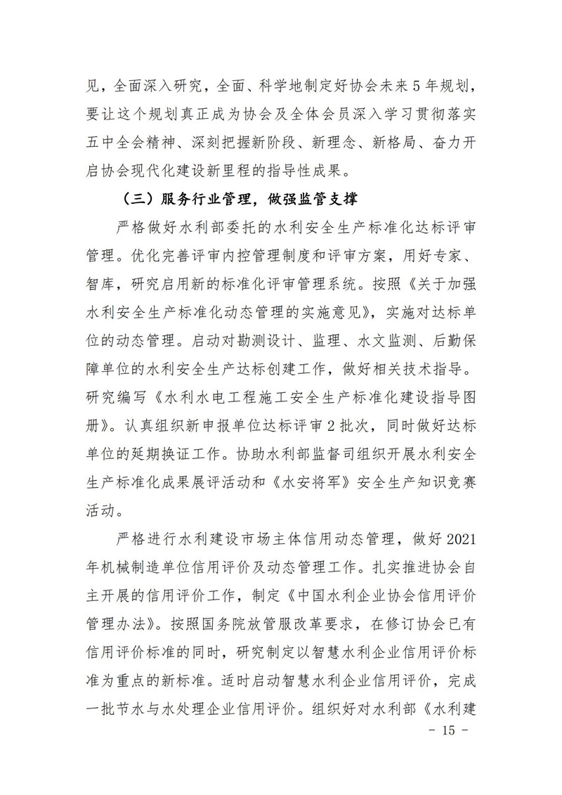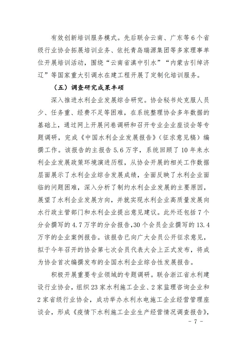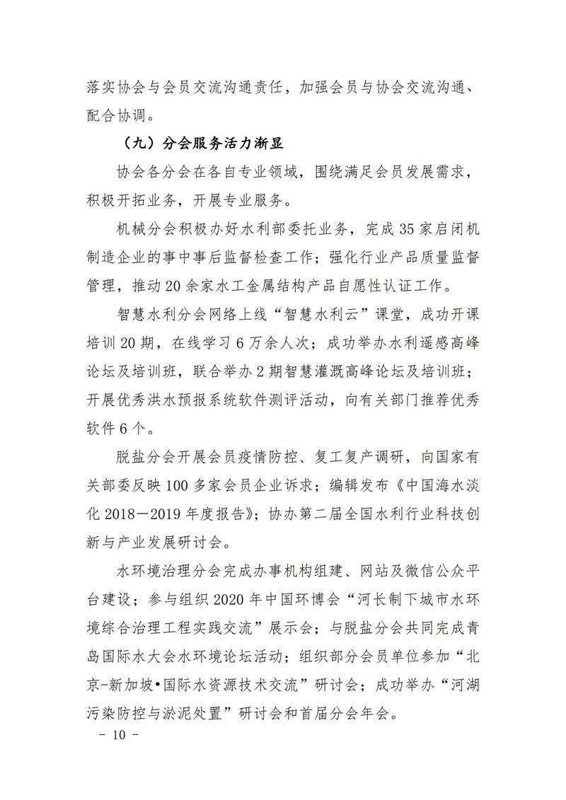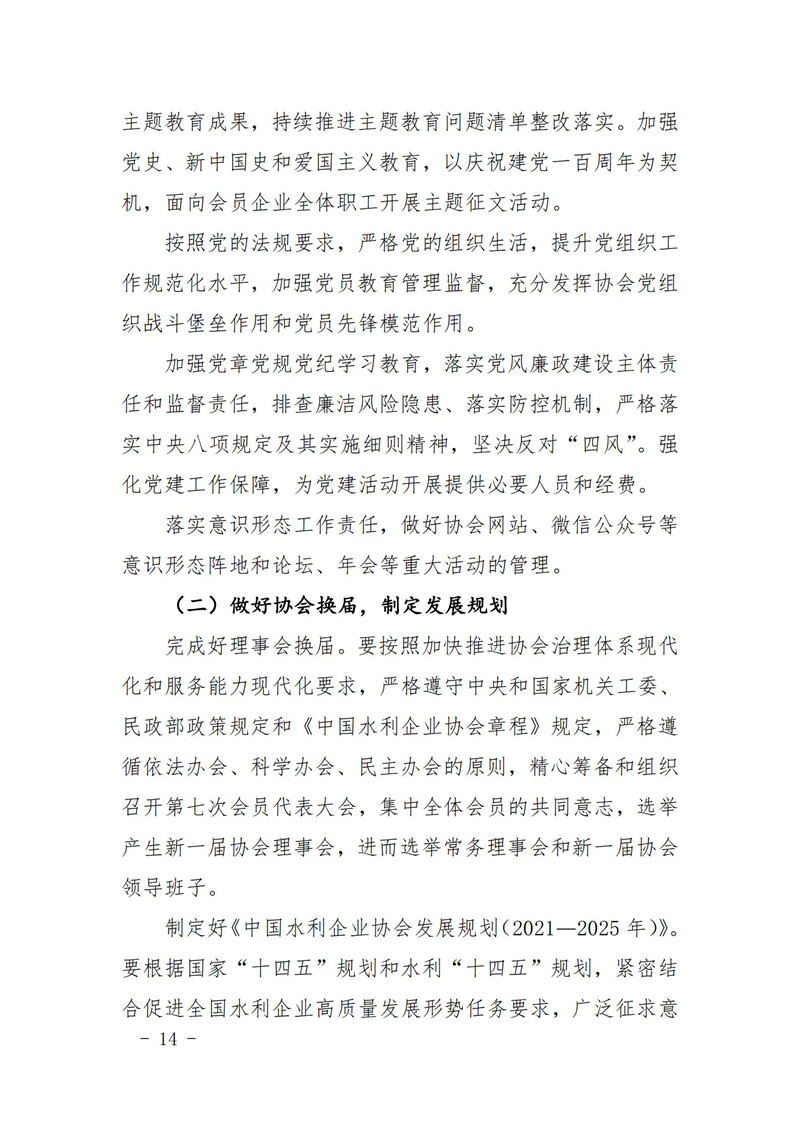 关于印发中国水利企业协会《2020年度工作报告》《2020年财务决算和2021年预算》的通知