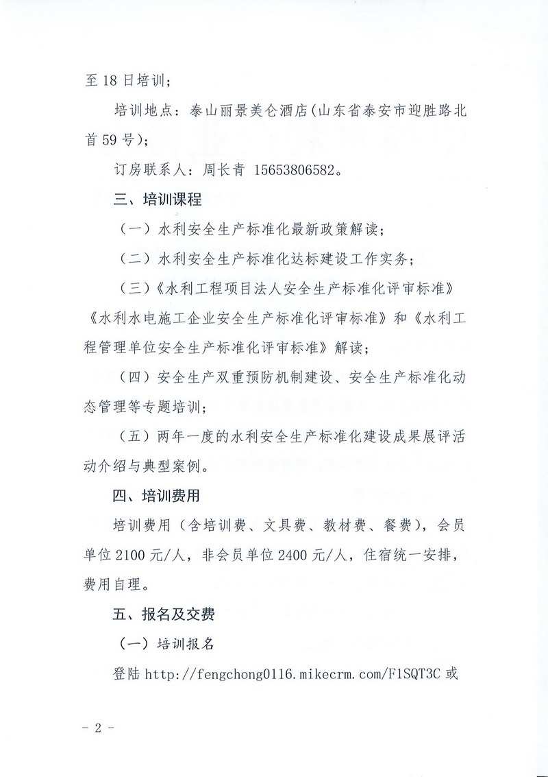 关于举办水利安全生产标准化建设宣贯(泰安)培训班的通知