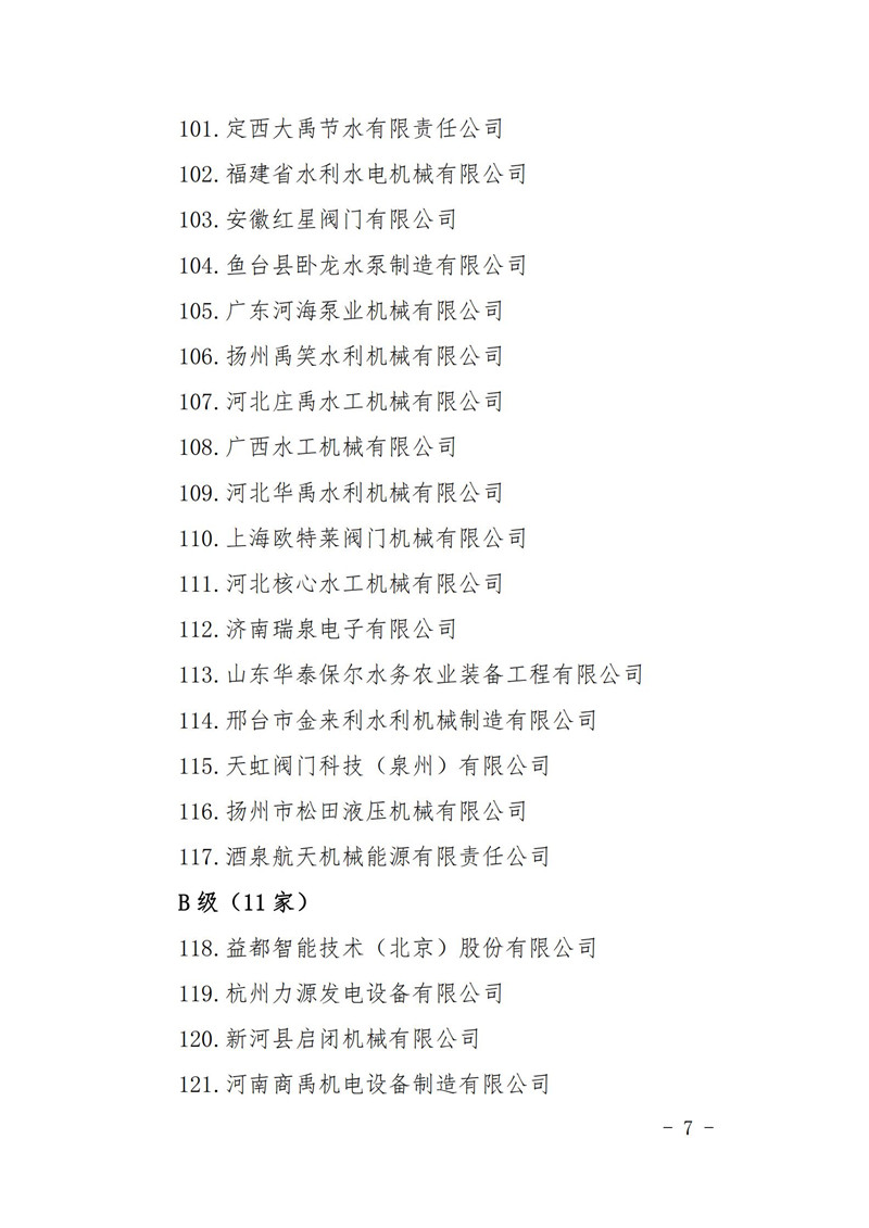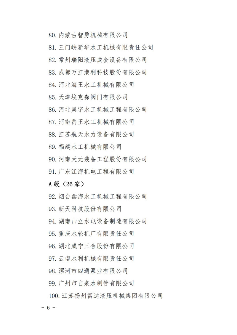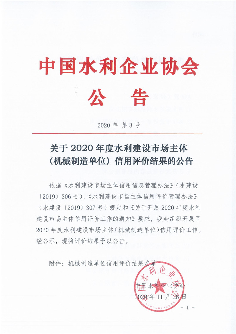 关于2020年度水利建设市场主体(机械制造单位)信用评价结果的公告