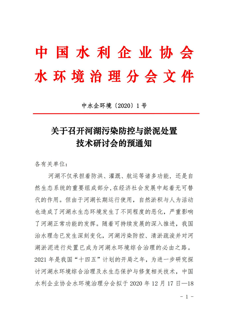 关于召开河湖污染防控与淤泥处置技术研讨会的预通知