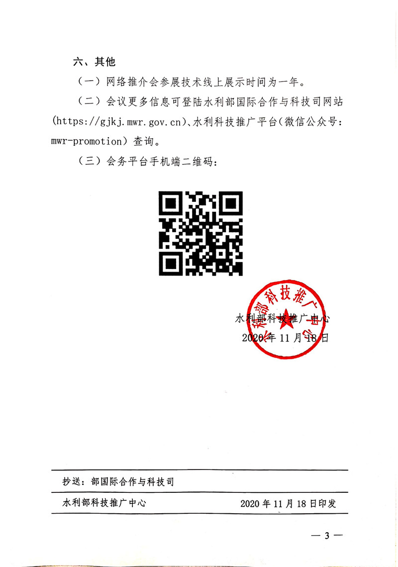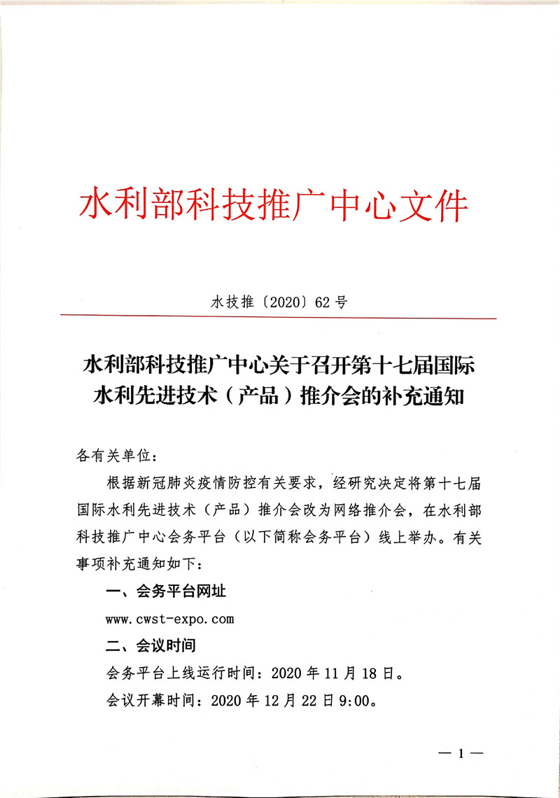 转发《水利部科技推广中心关于召开第十七届国际水利先进技术(产品)推介会的补充通知》