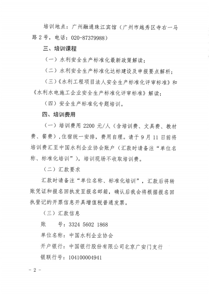 关于举办水利安全生产标准化建设宣贯(广州)培训班的通知