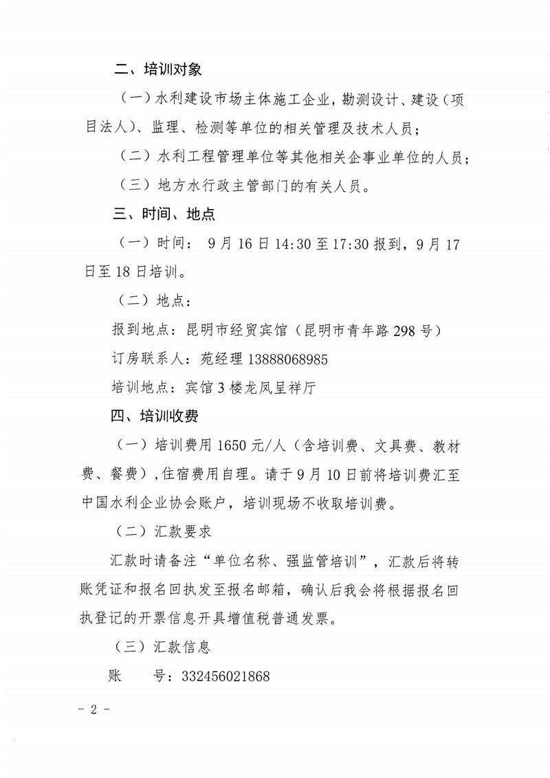 关于举办水利强监管培训(昆明)班的通知