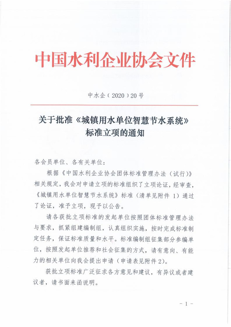 关于批准《城镇用水单位智慧节水系统》标准立项的通知