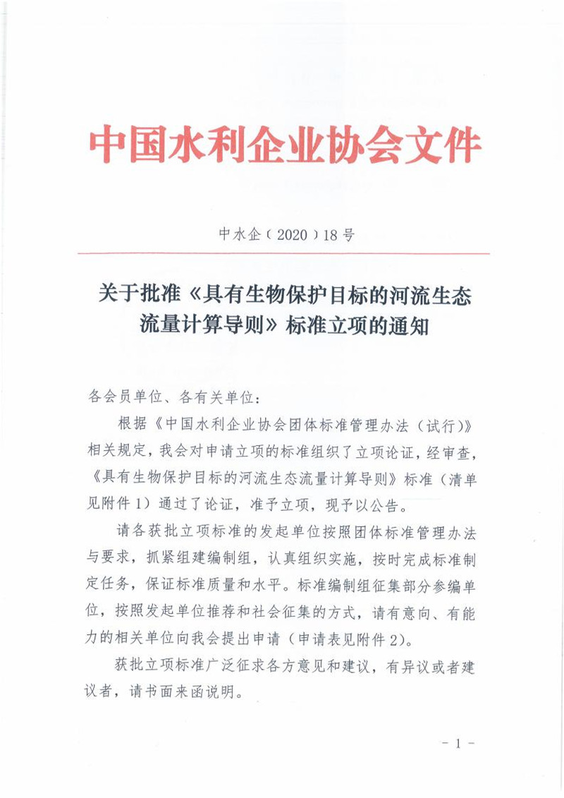 关于批准《具有生物保护目标的河流生态流量计算导则》标准立项的通知