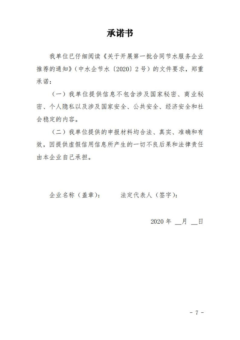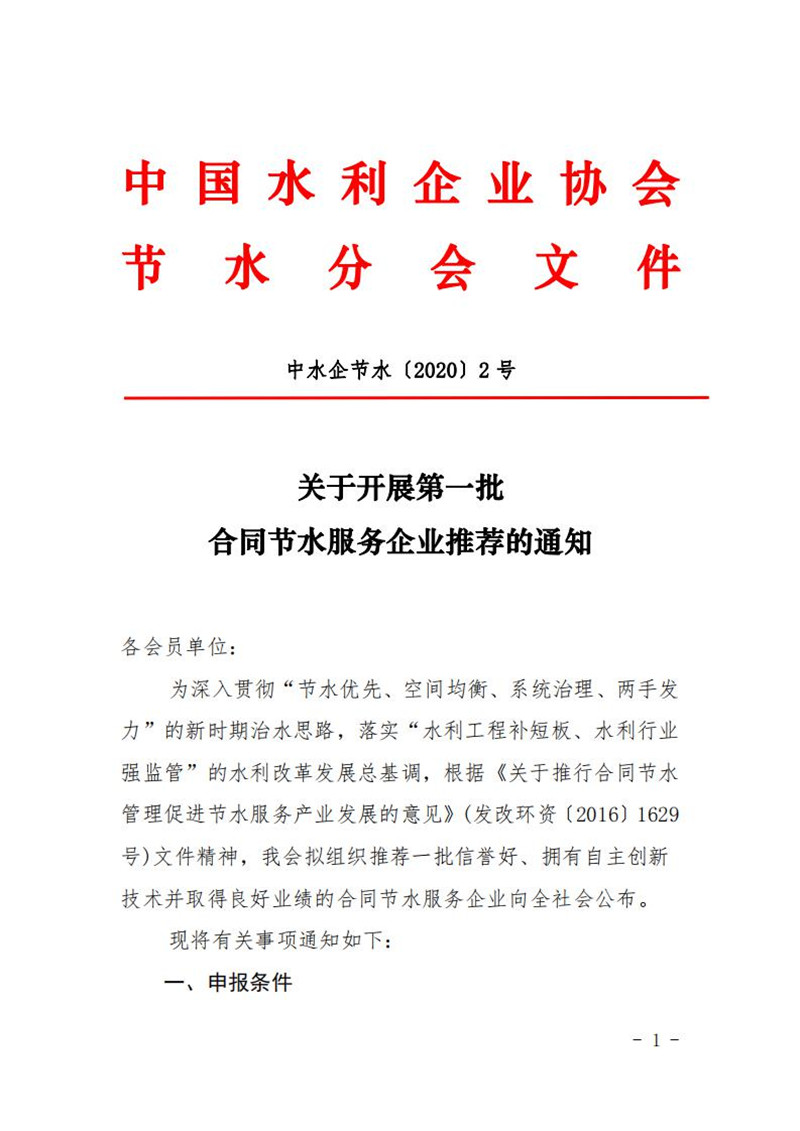 关于开展第一批合同节水服务企业推荐的通知