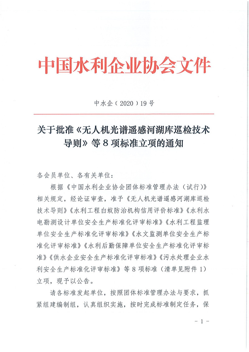 关于批准《无人机光谱遥感河湖库巡检技术导则》等8项标准立项的通知