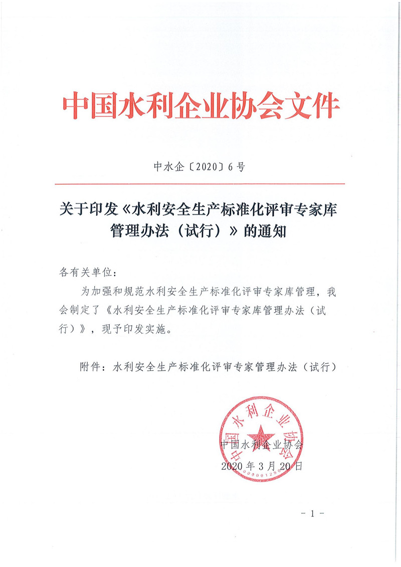 关于印发《水利安全生产标准化评审专家库管理办法(试行)》的通知