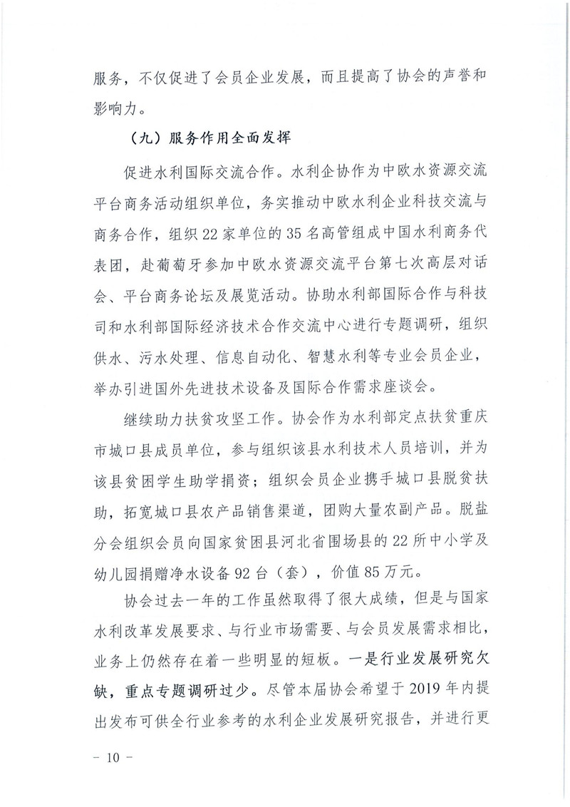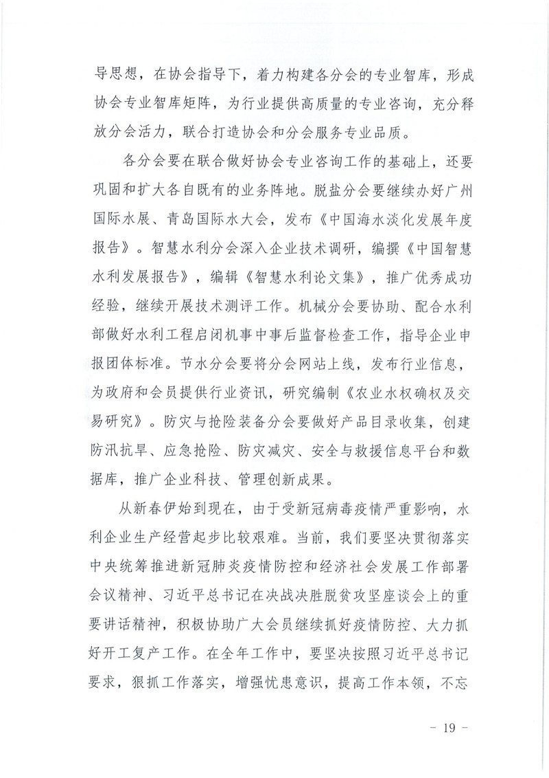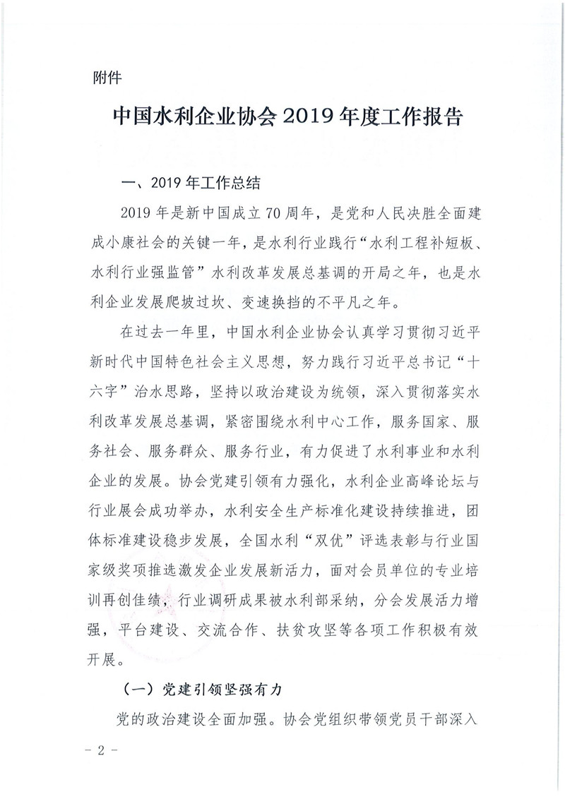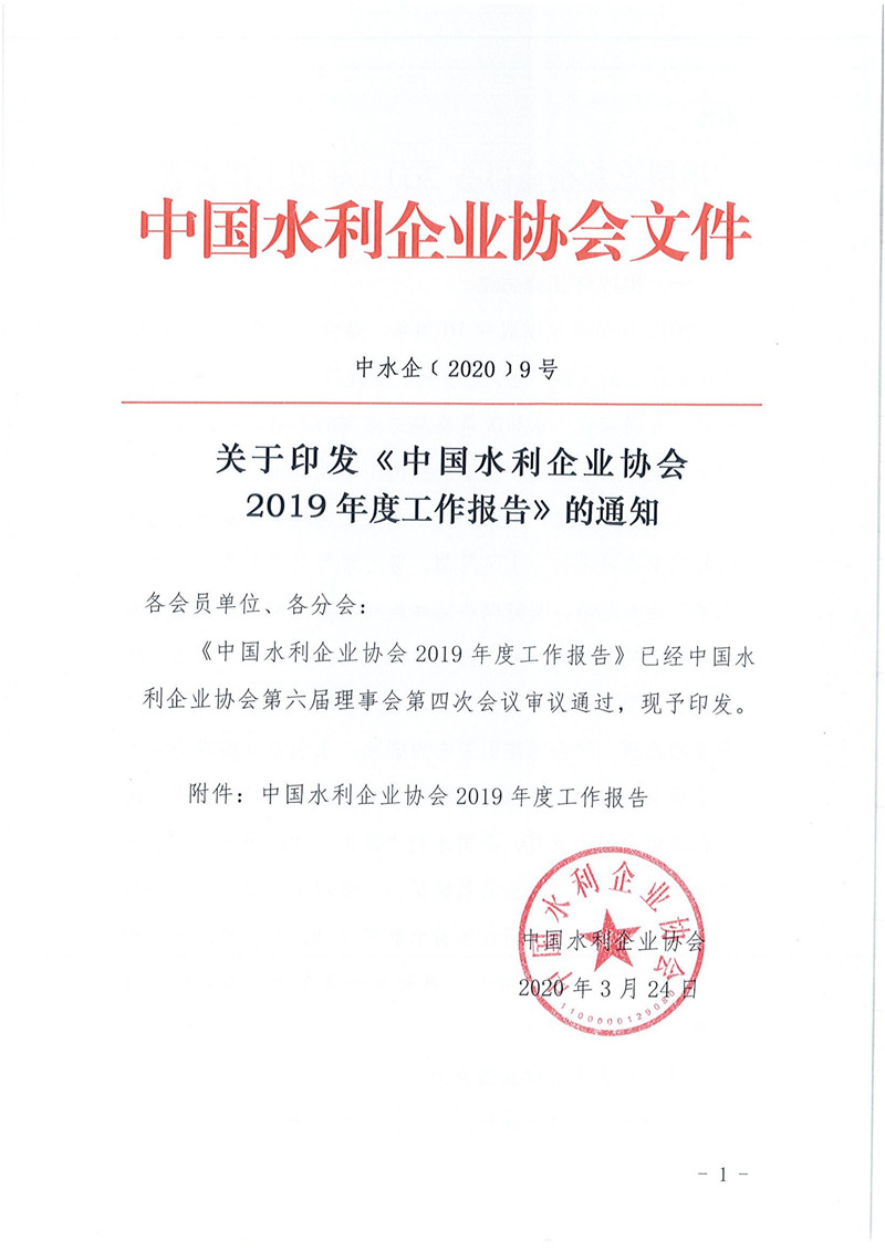 关于印发《中国水利企业协会2019年度工作报告》的通知