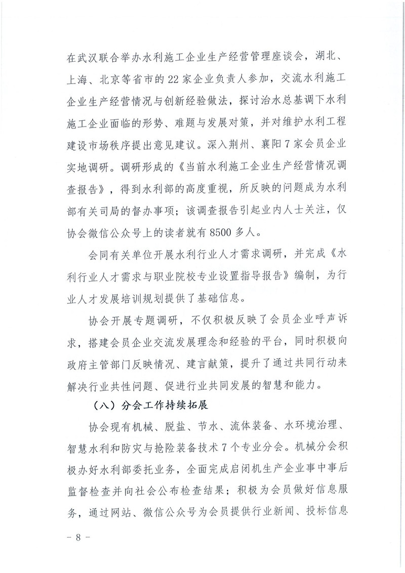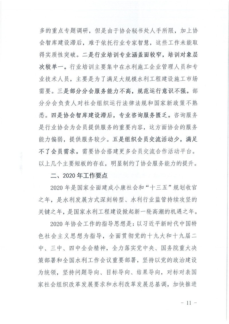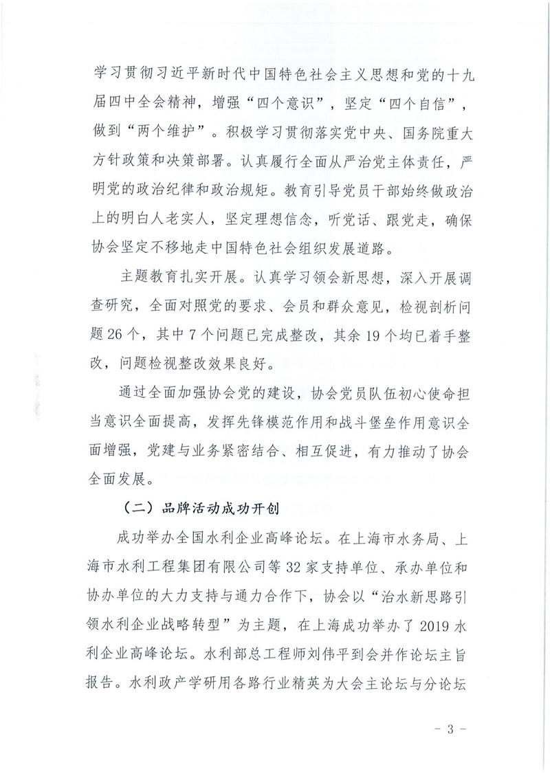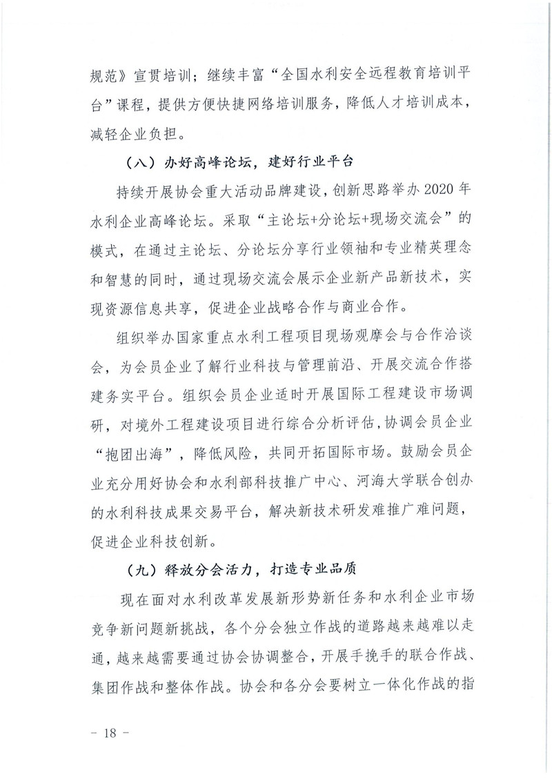 关于印发《中国水利企业协会2019年度工作报告》的通知