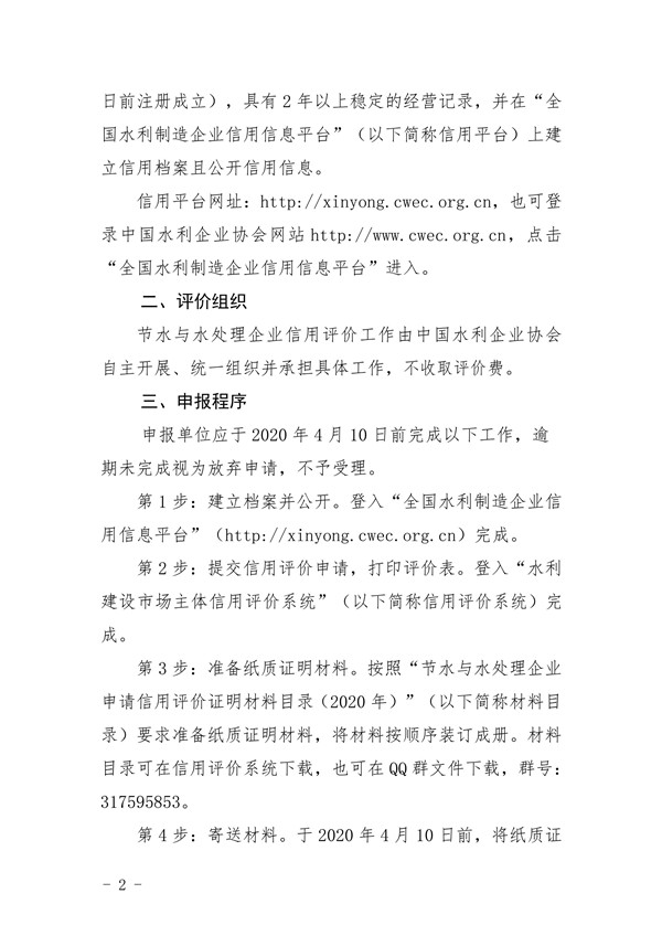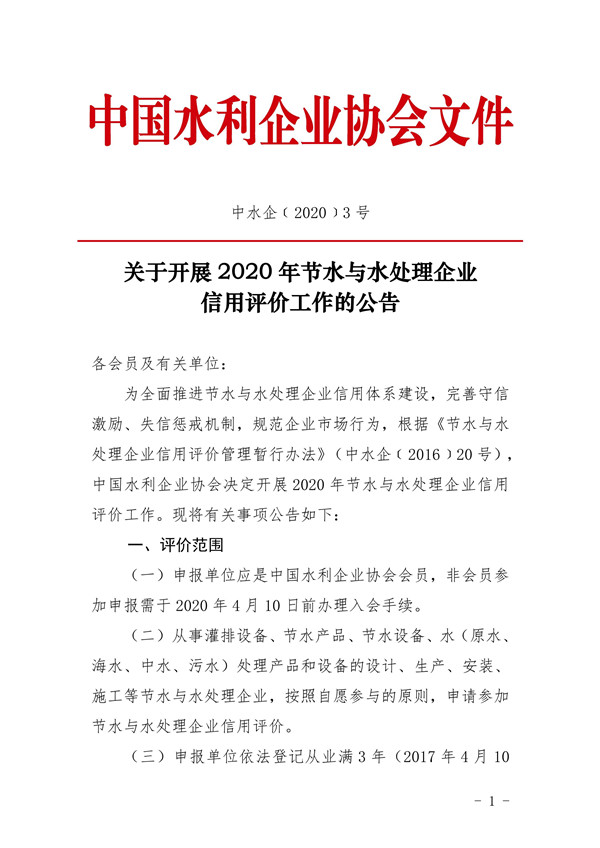 关于开展2020年节水与水处理企业信用评价工作的公告