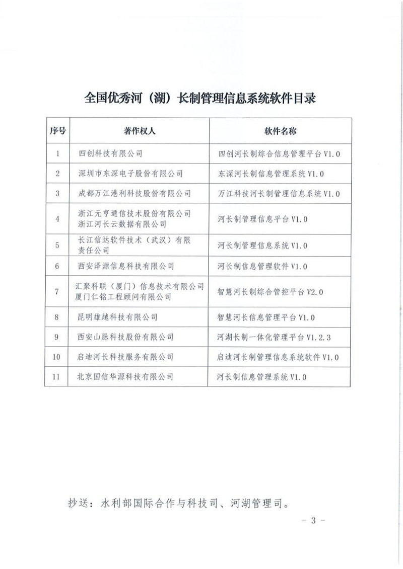 关于全国优秀河(湖)长制管理信息系统软件测评结果的公告
