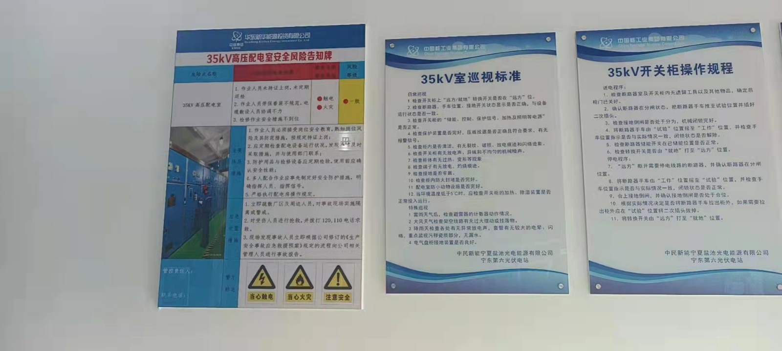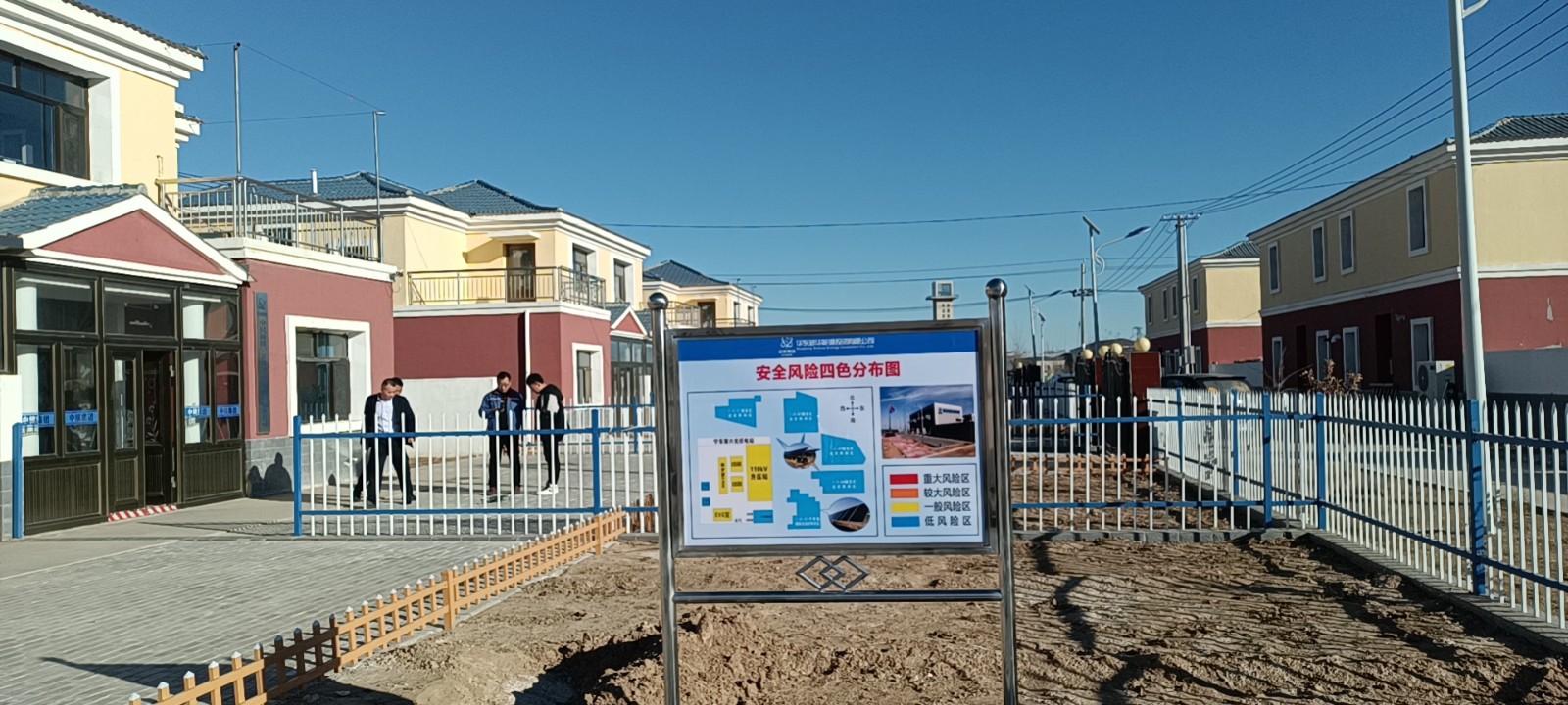 设置安全风险四色分布图、作业安全风险比较图、安全风险公告栏、岗位安全风险 “明白卡”、安全标志等。