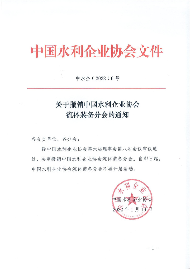 关于撤销中国水利企业协会流体装备分会的通知.pdf