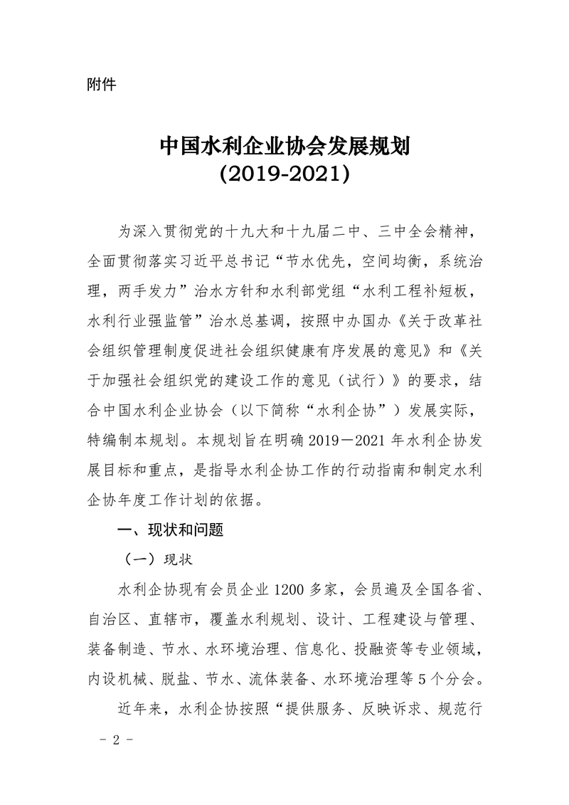 关于印发《中国水利企业协会发展规划(2019-2021)》的通知